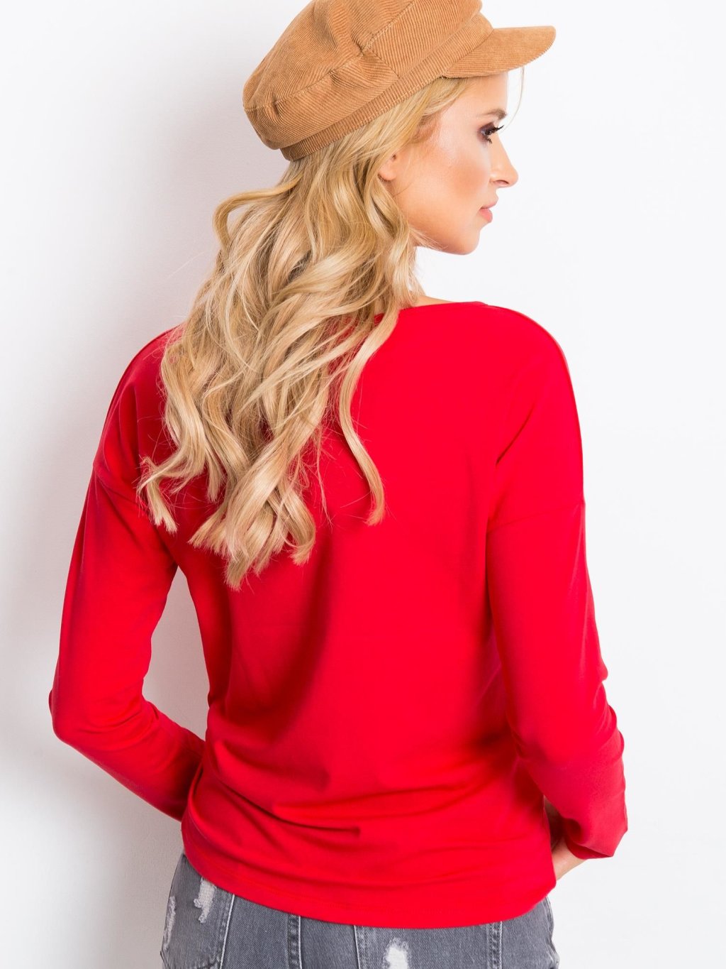 Női piros póló hosszú ujjakkal