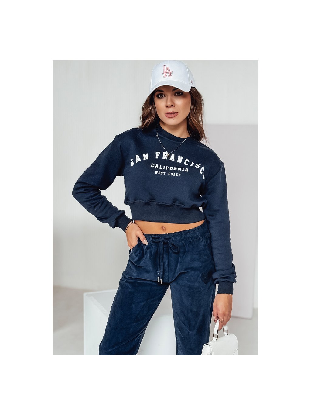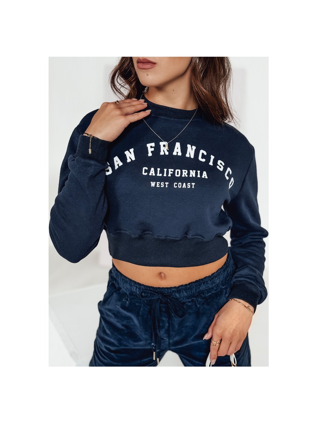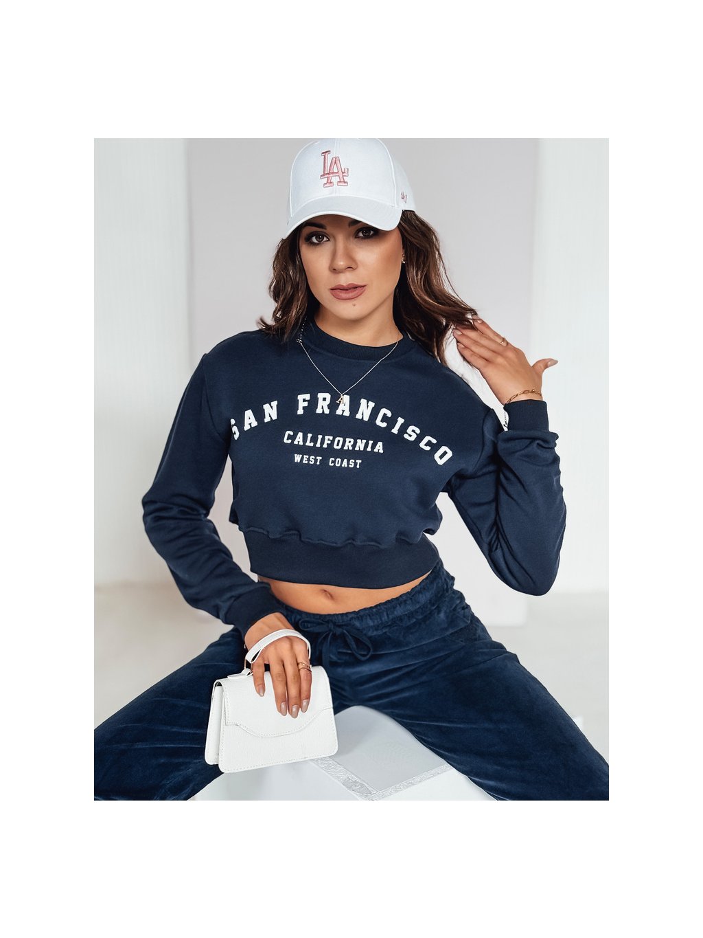 Női sötétkék crop pulóver nyomtatással SAN FRANCISCO
