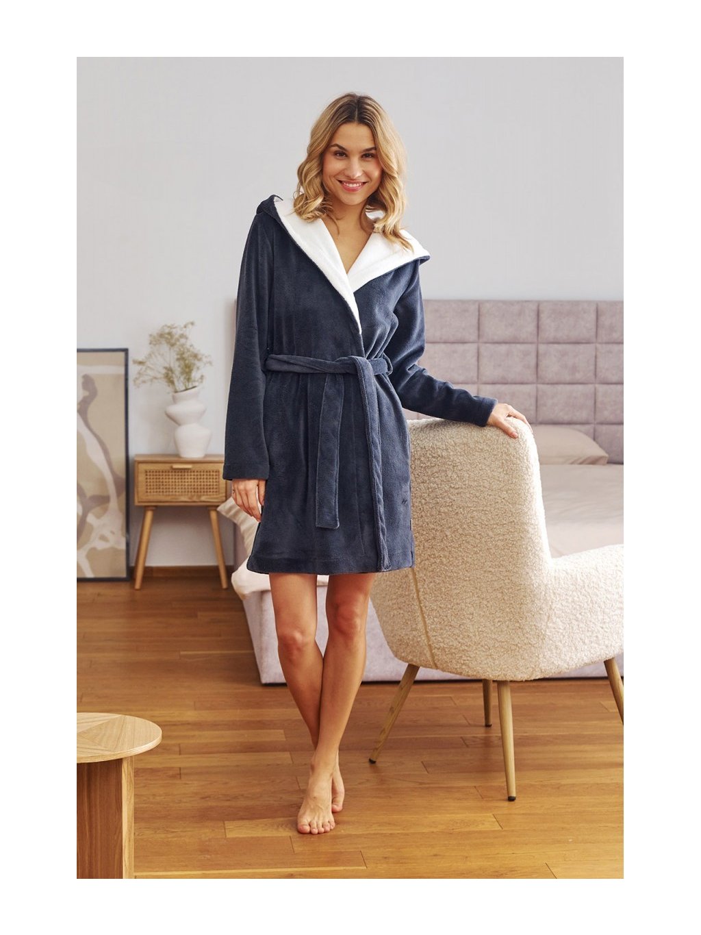 Női sötétszürke kényelmes fürdőköpeny kapucnival SOFT