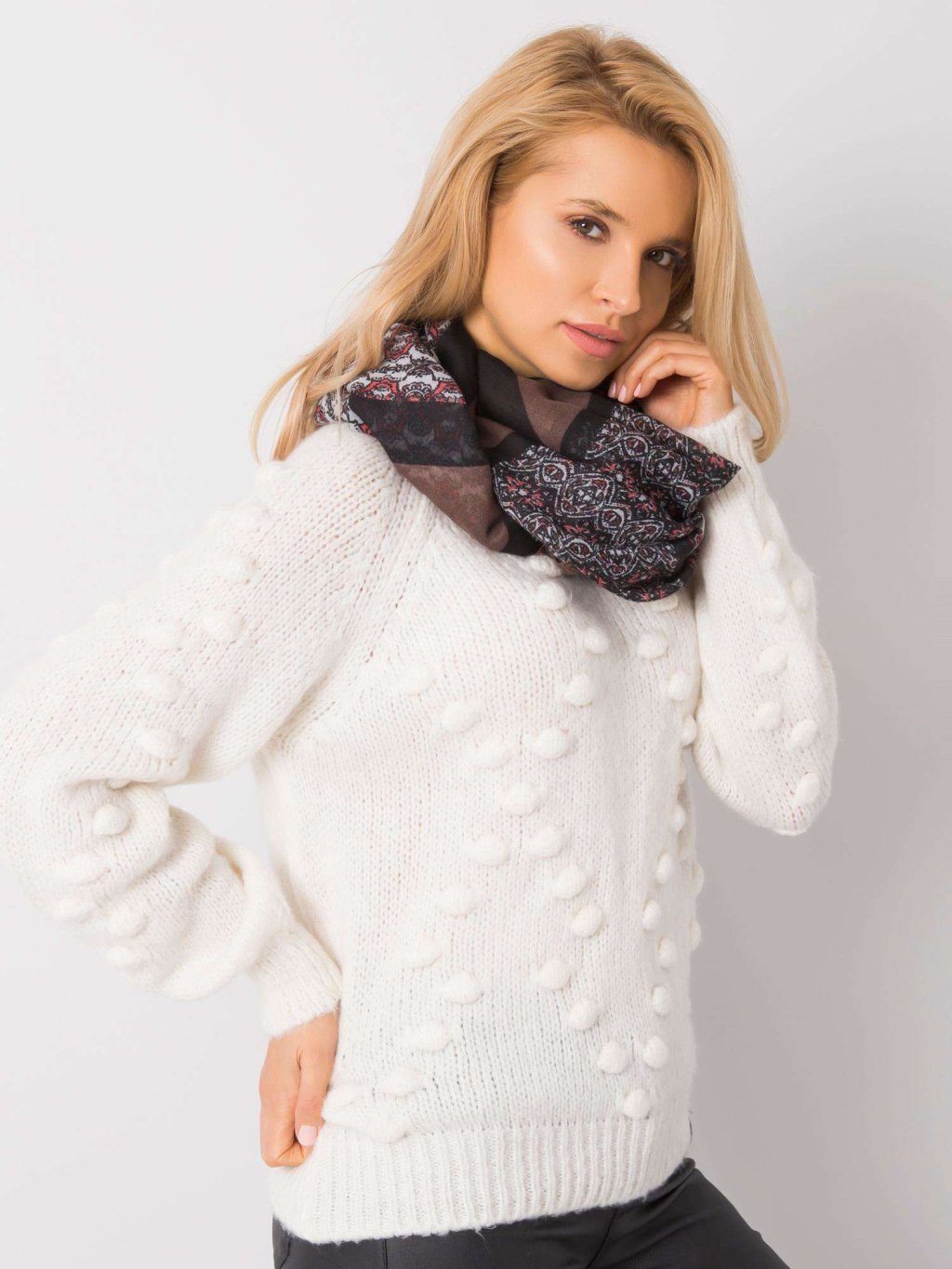 Női színes kendő mintákkal