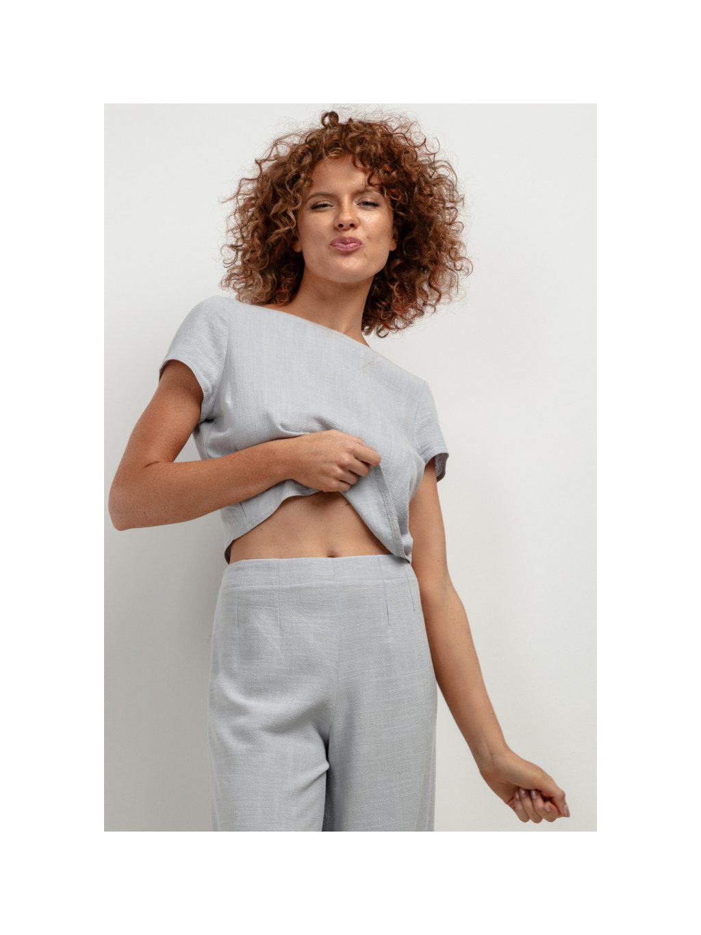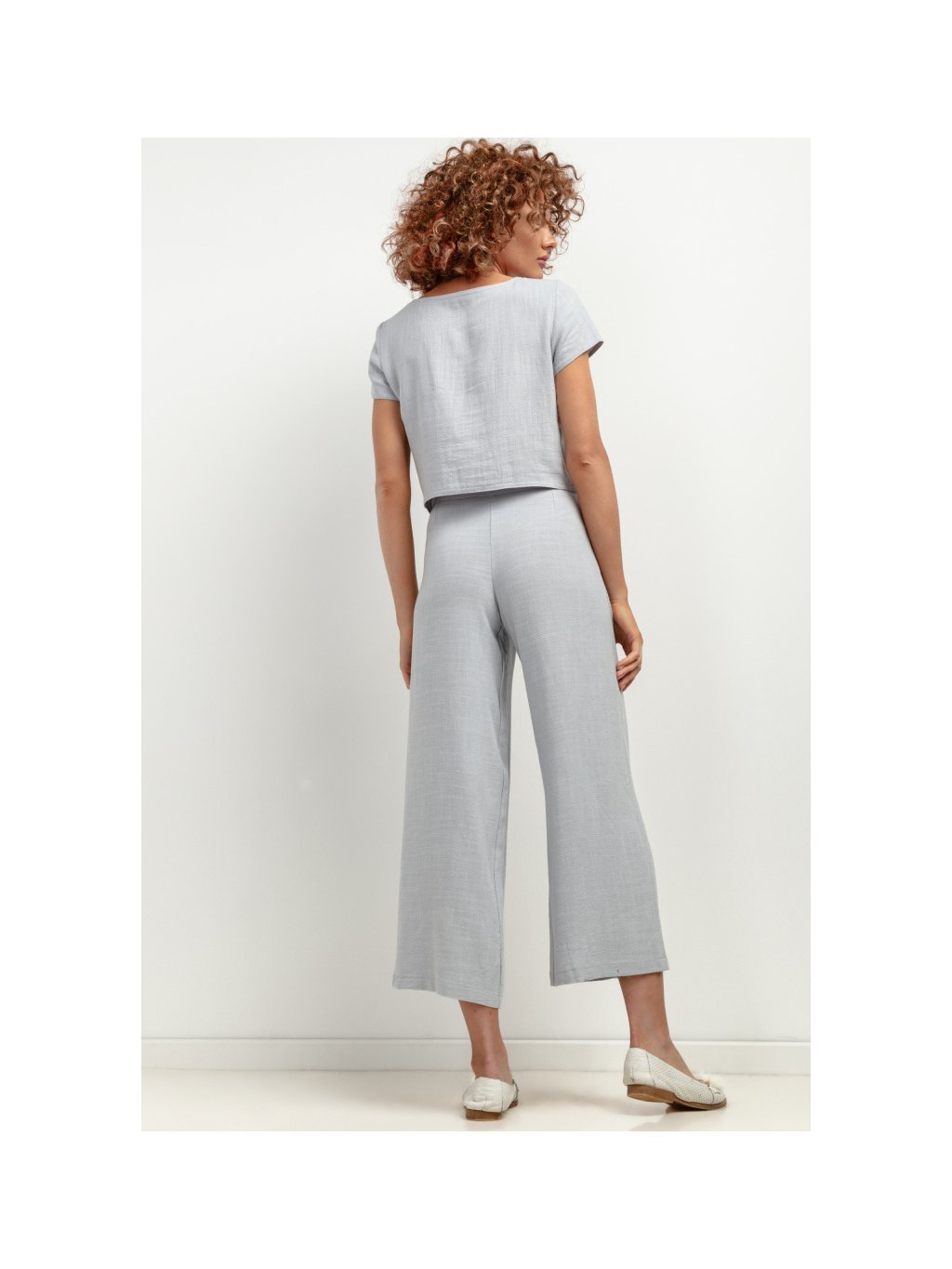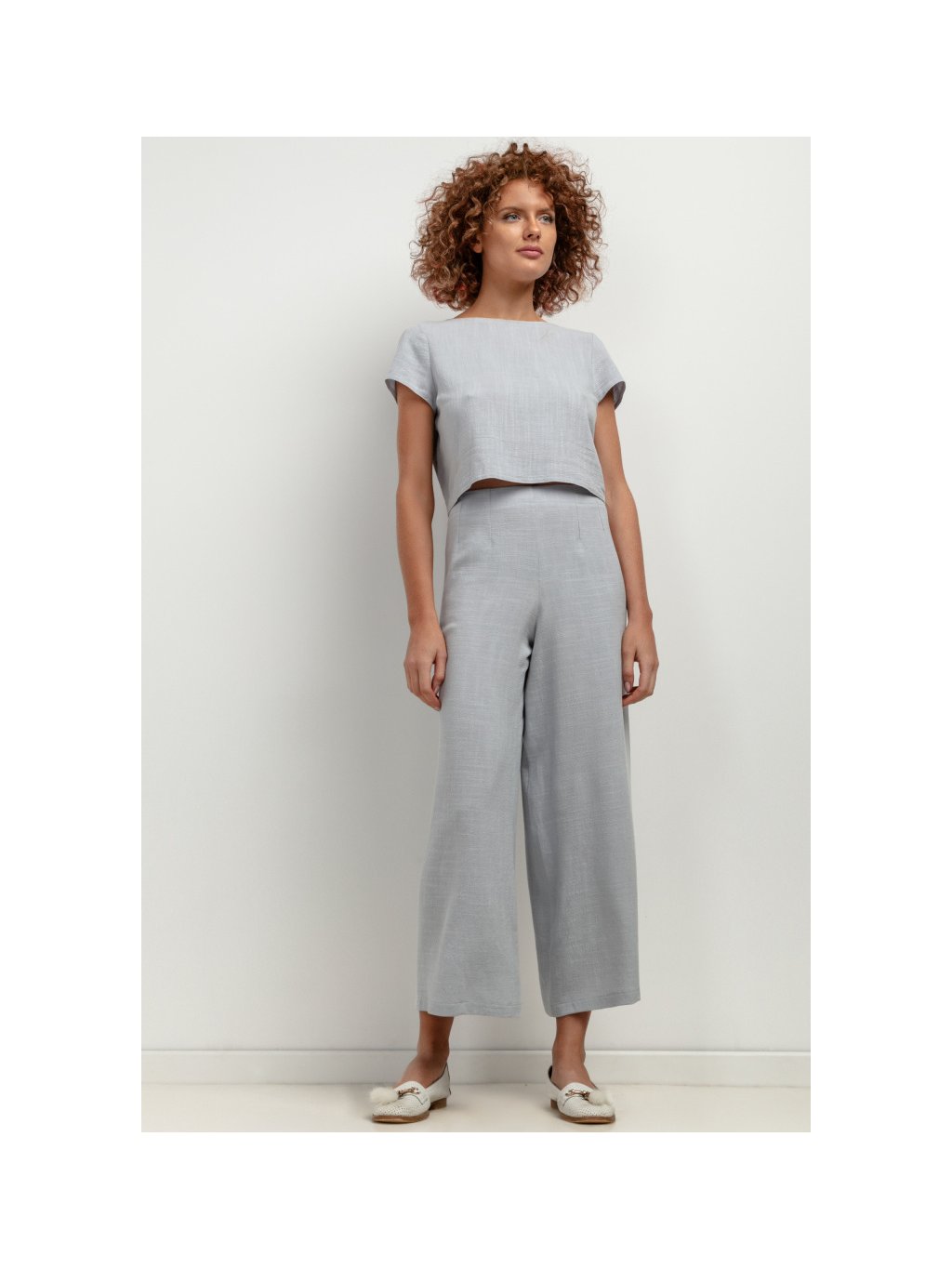 Női szürke vászonnadrág magas derékkal