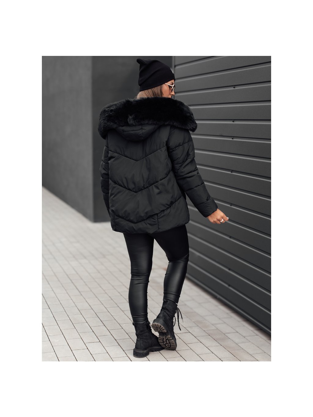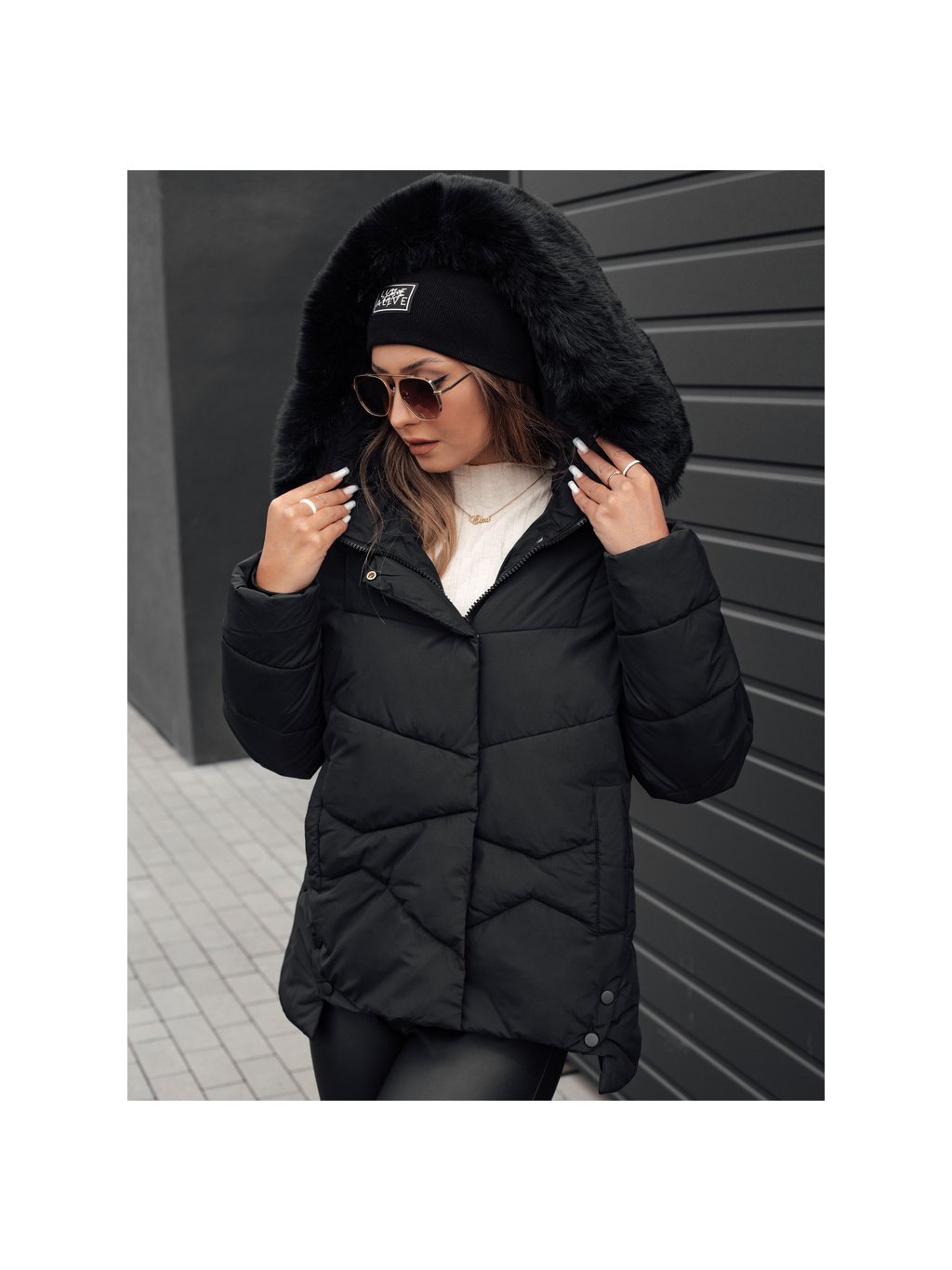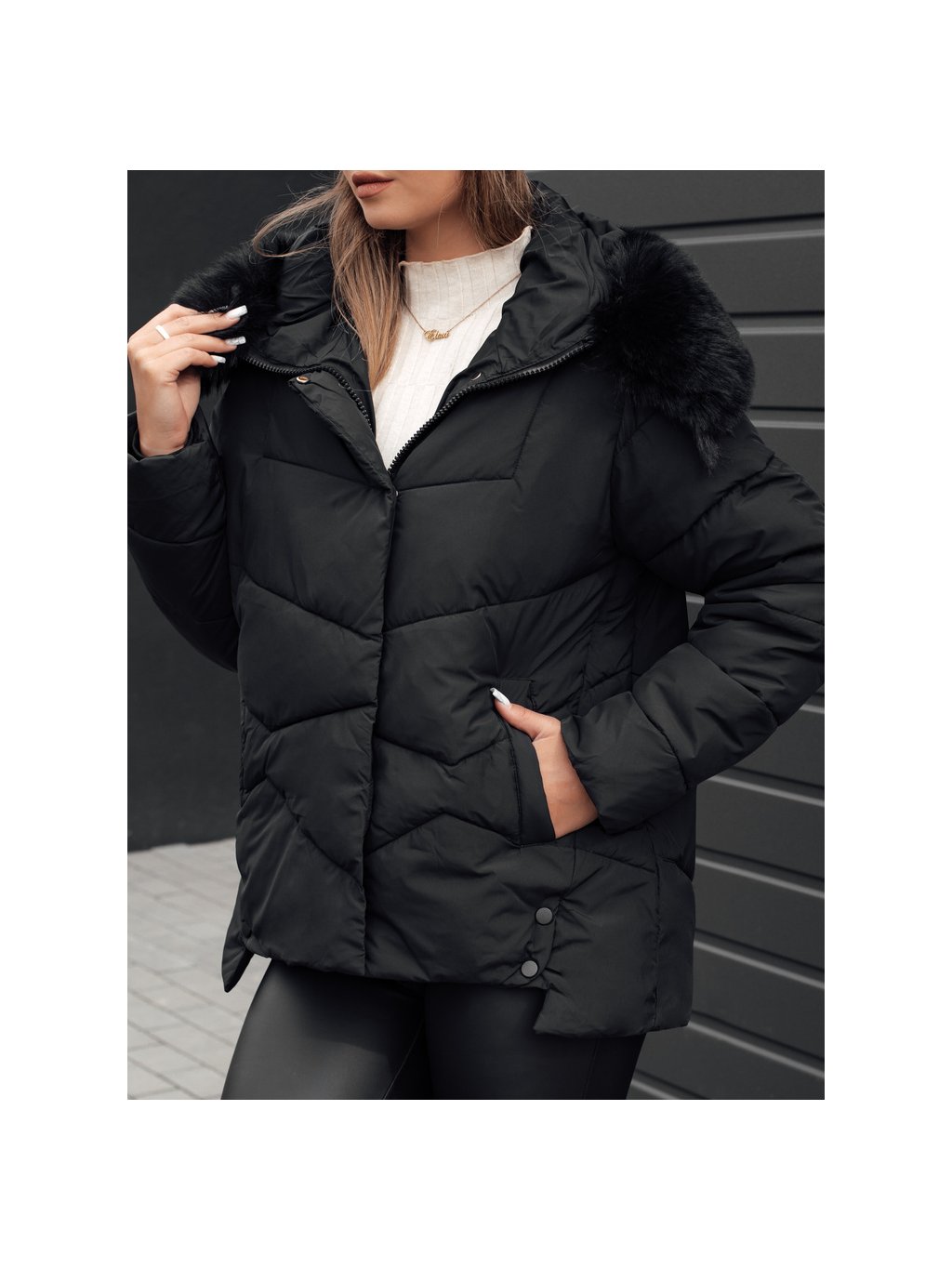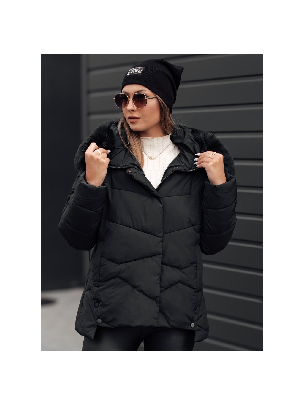 Női téli fekete steppelt kabát FIXMIX