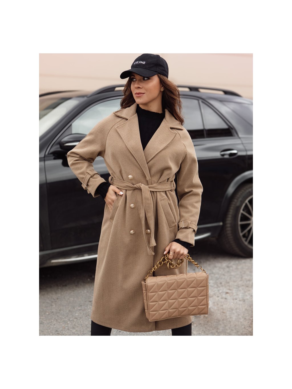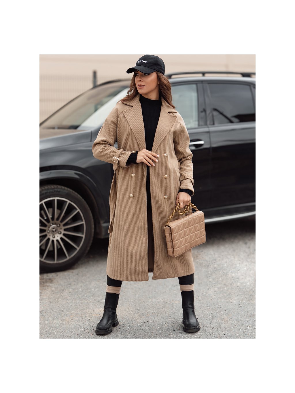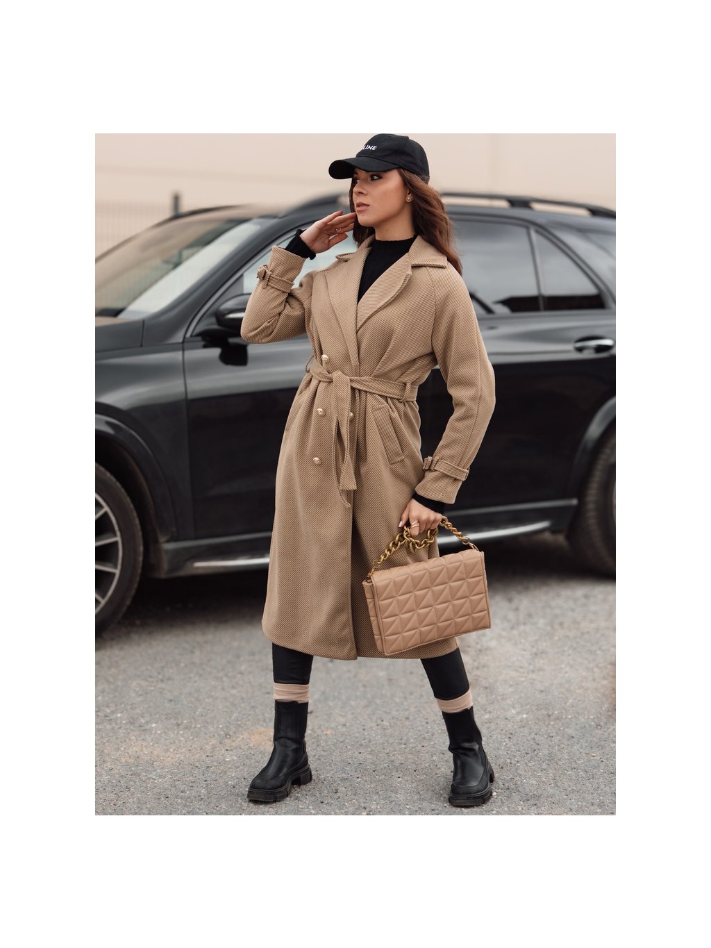 Női teveszínű hosszú oversize kabát CAMELLYN
