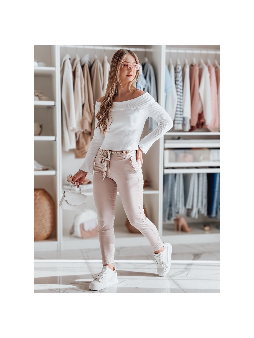 Női világos rózsaszín chino nadrág övvel ROSSALI