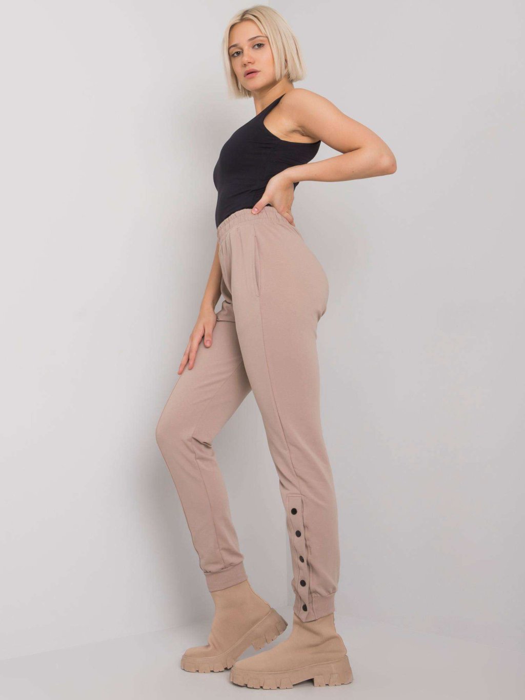 Női világosbarna patentos melegítőnadrág