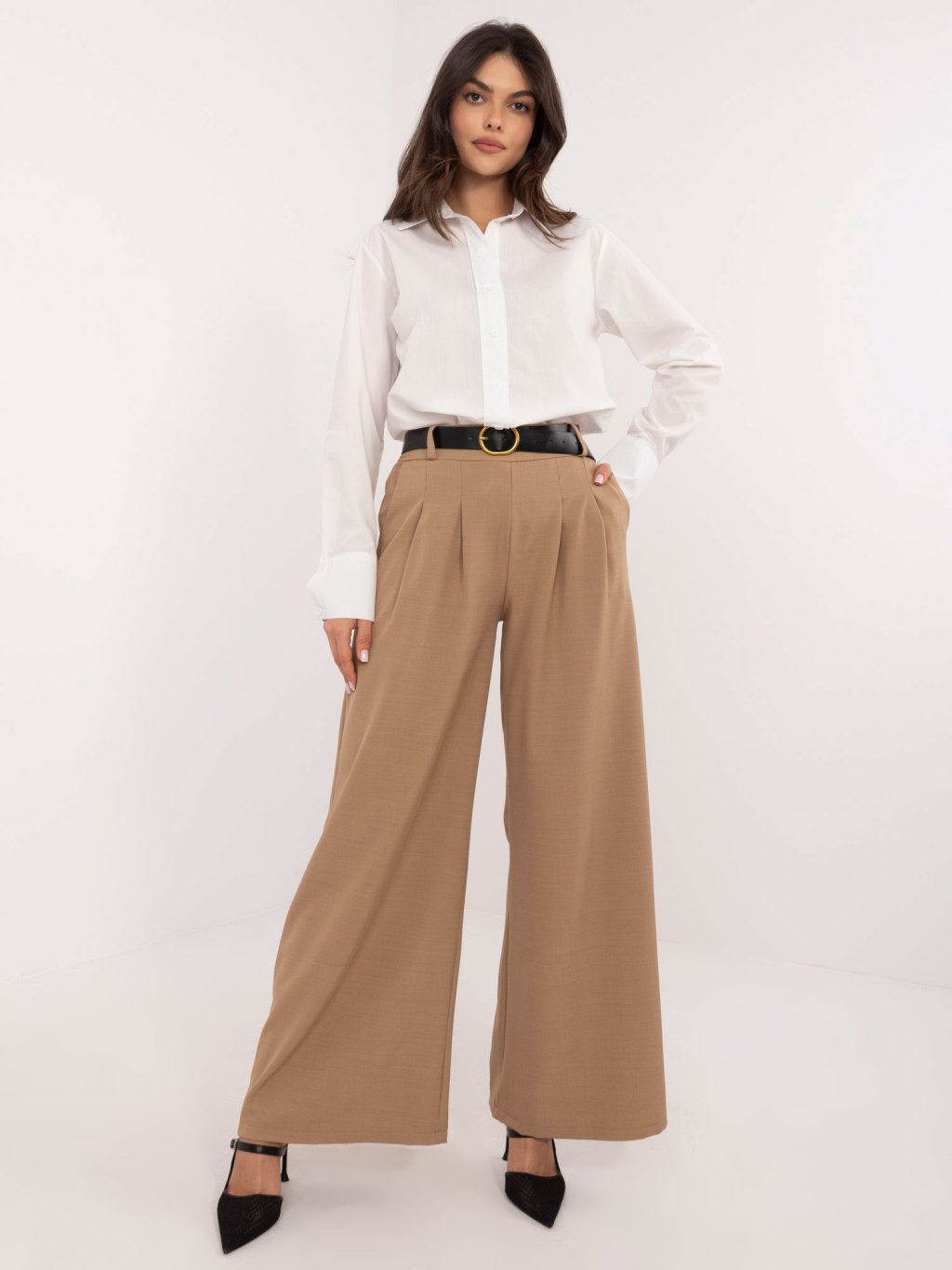 Női világosbarna széles szárú nadrág rugalmas derékkal