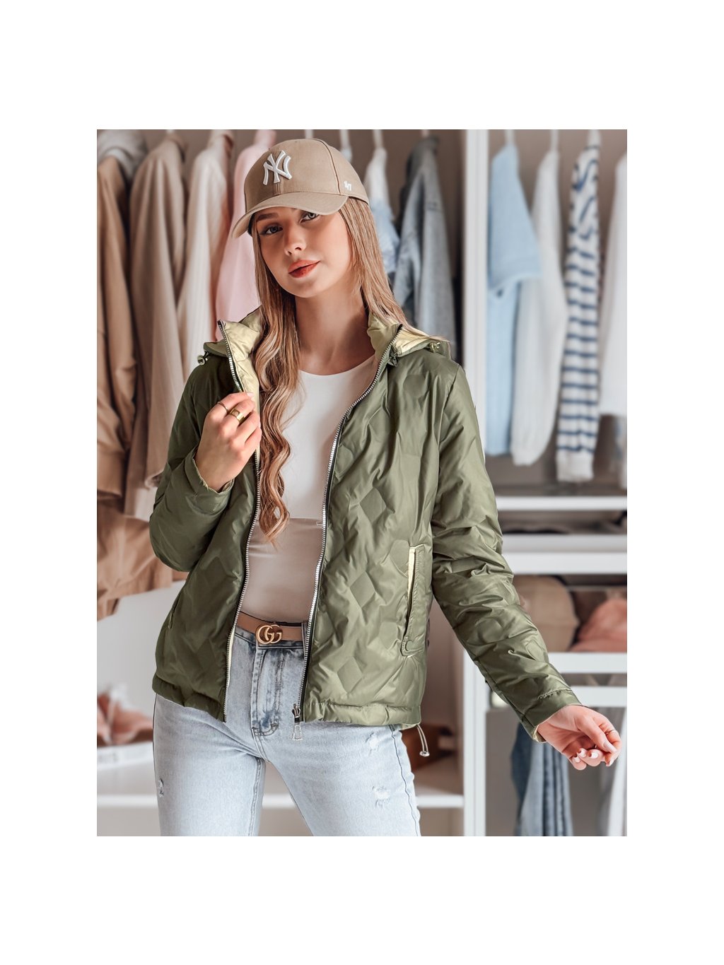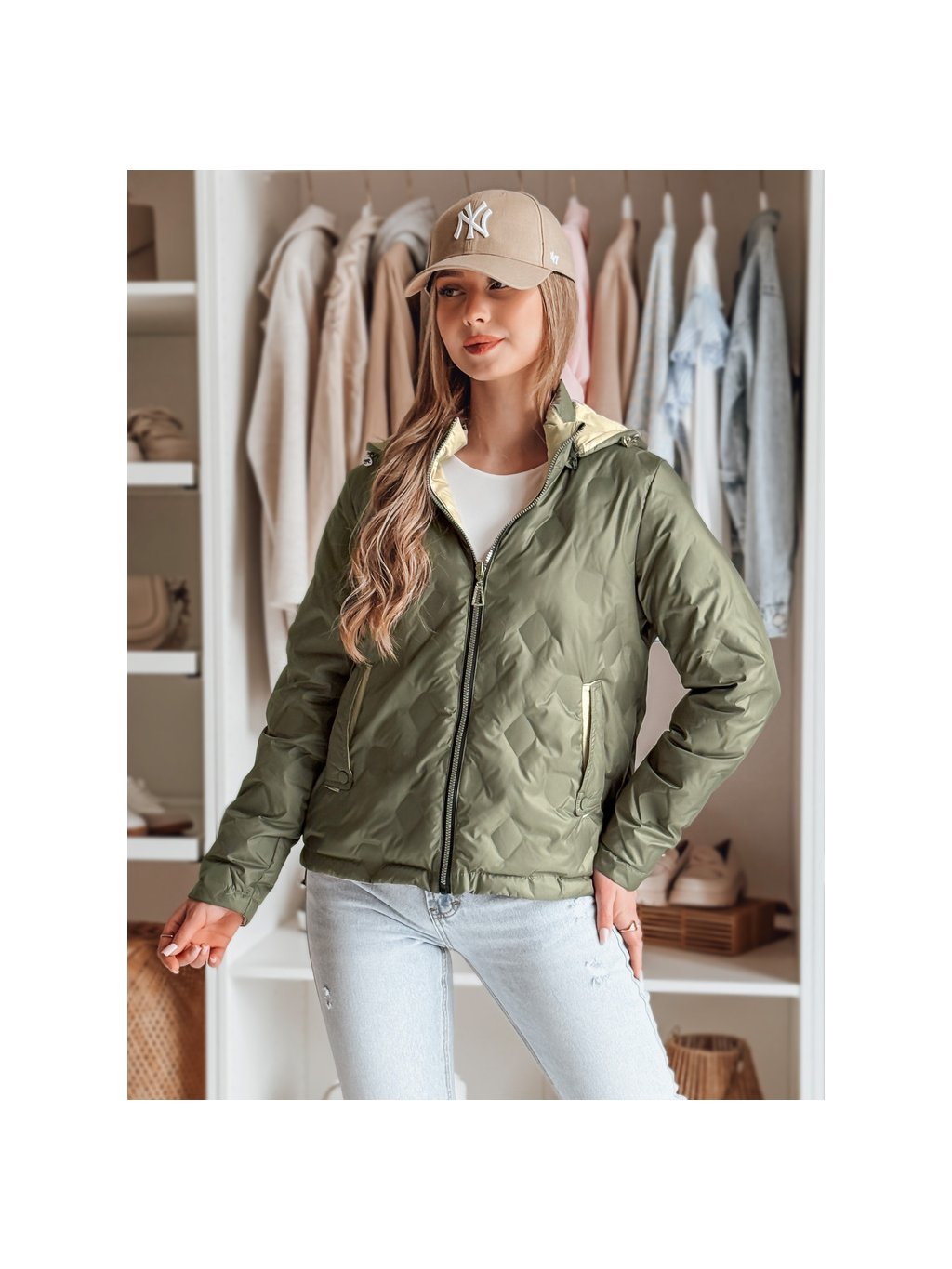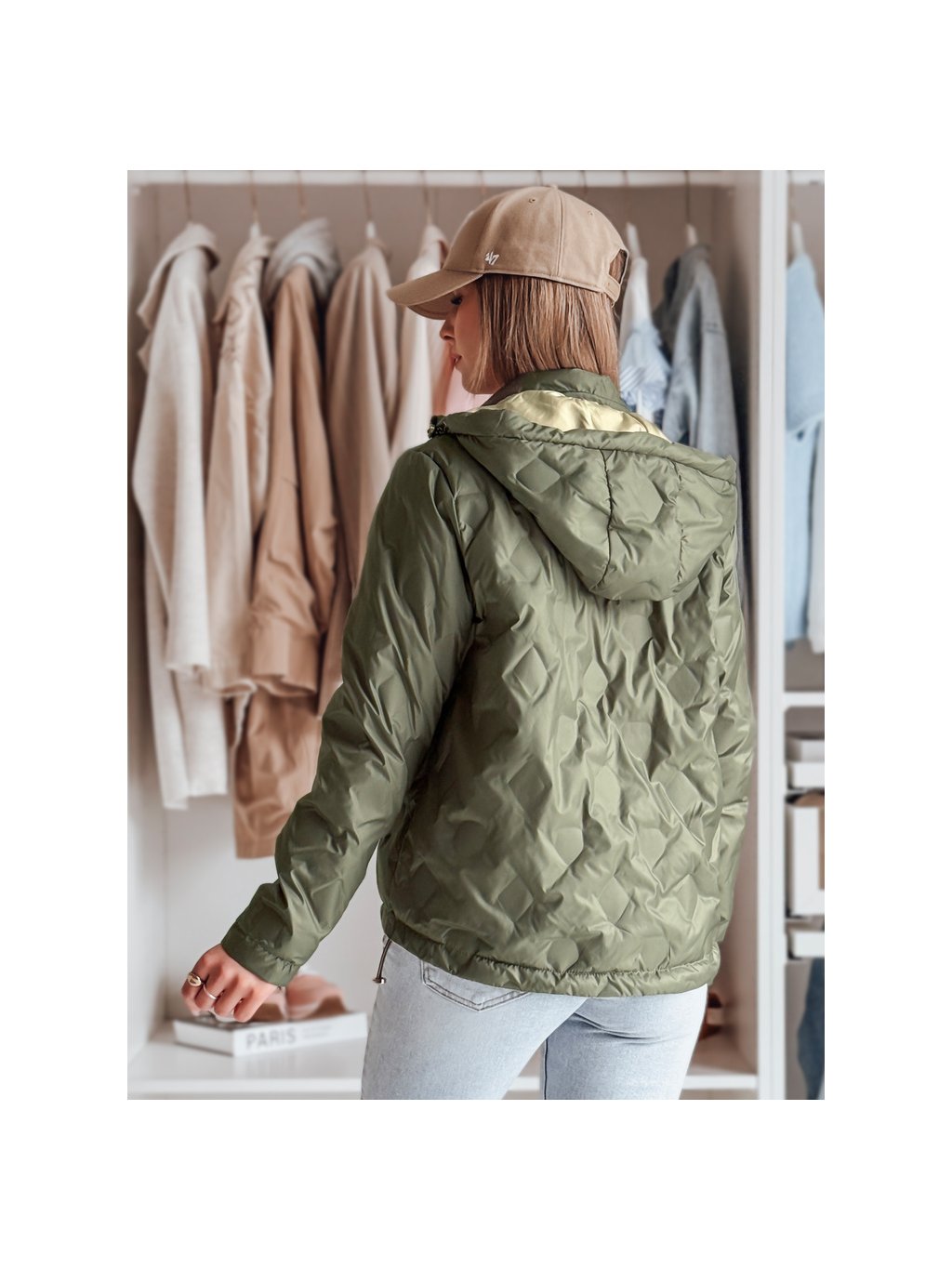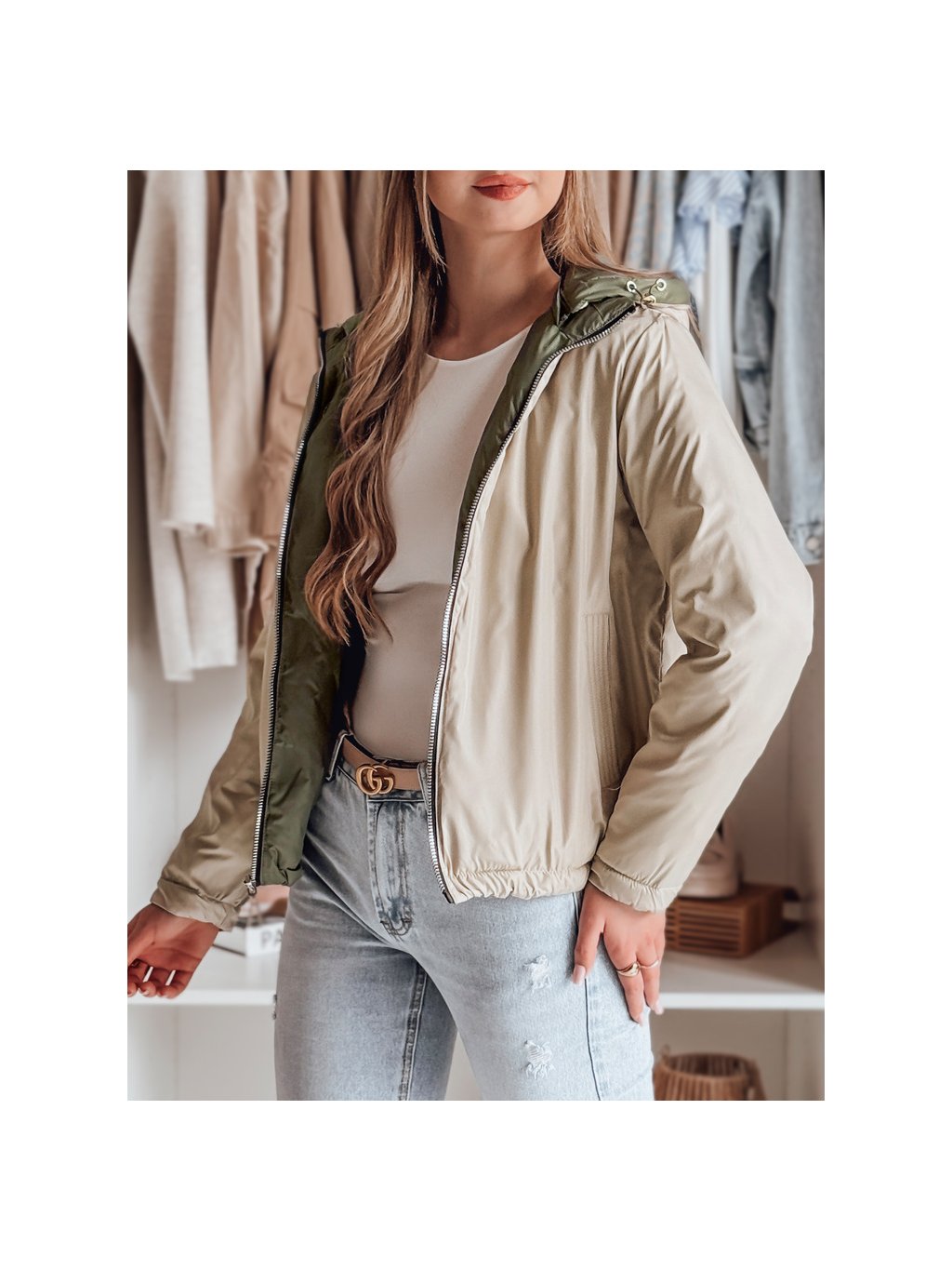 Női zöld-bézs átmeneti kifordítható kabát SYLVIAN