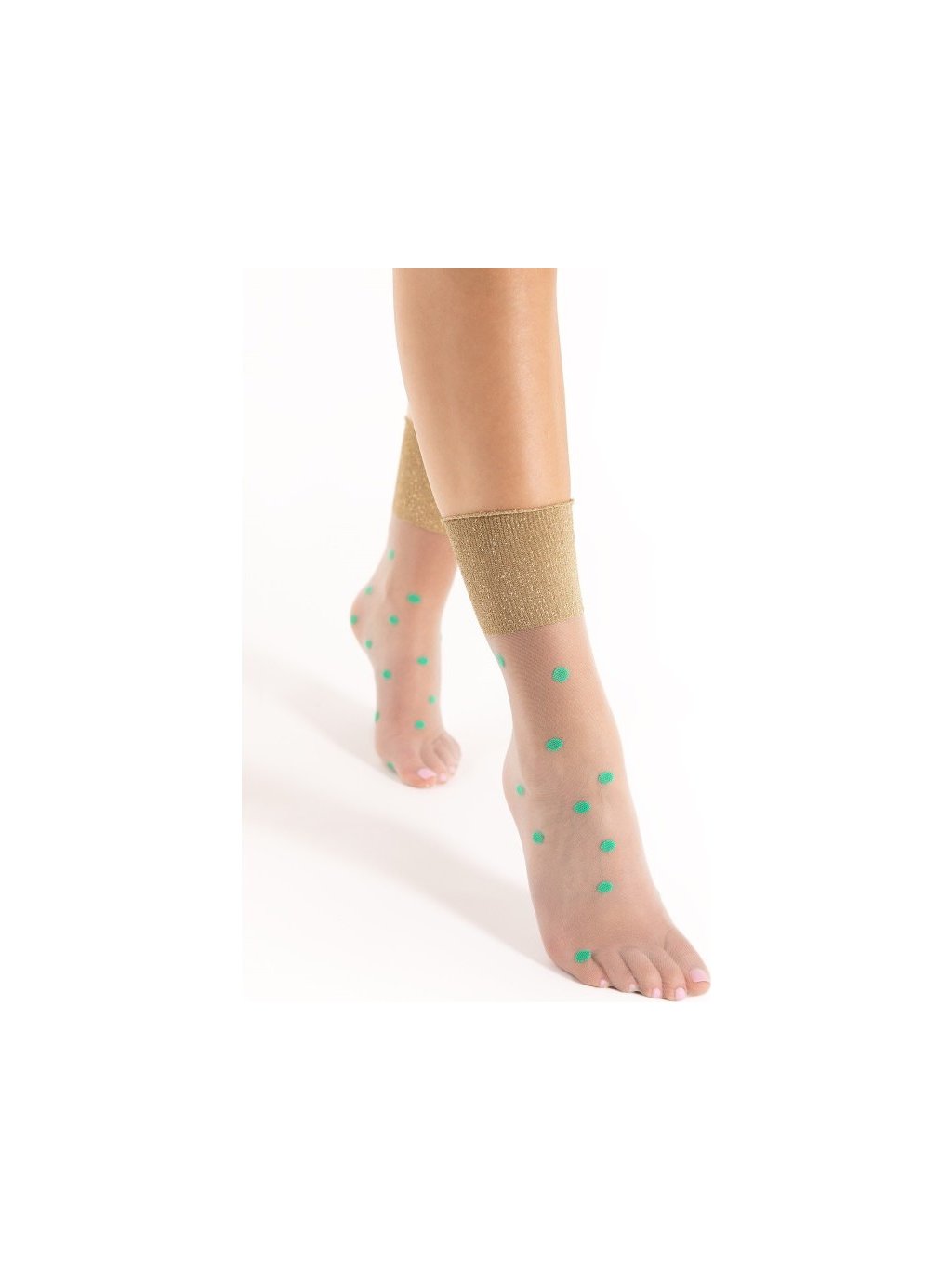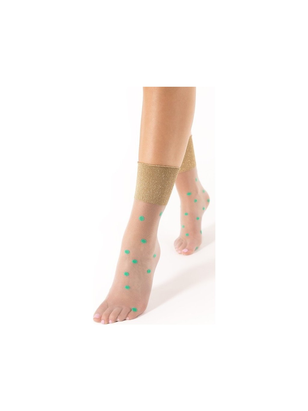 Nylon zokni - arany díszítéssel, zöld pöttyös - Fiore G 1146 Brodway 20 den