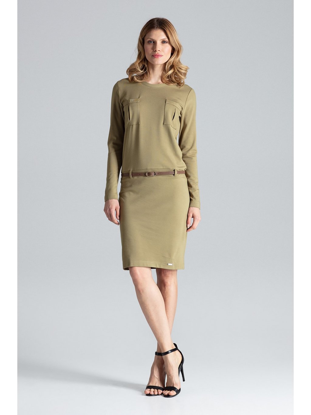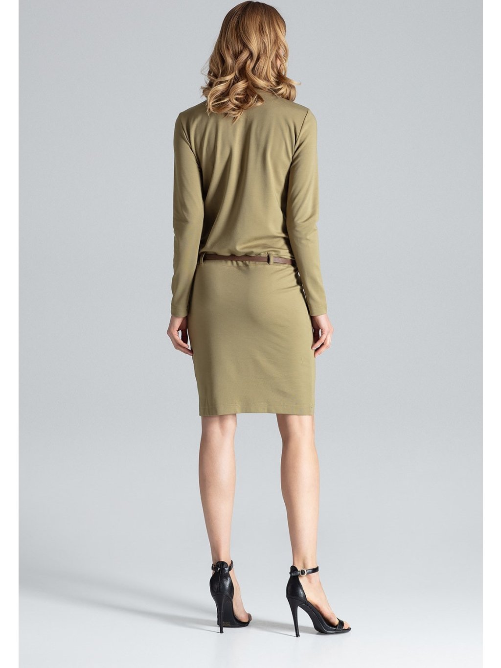 Olivazöld ruha övvel