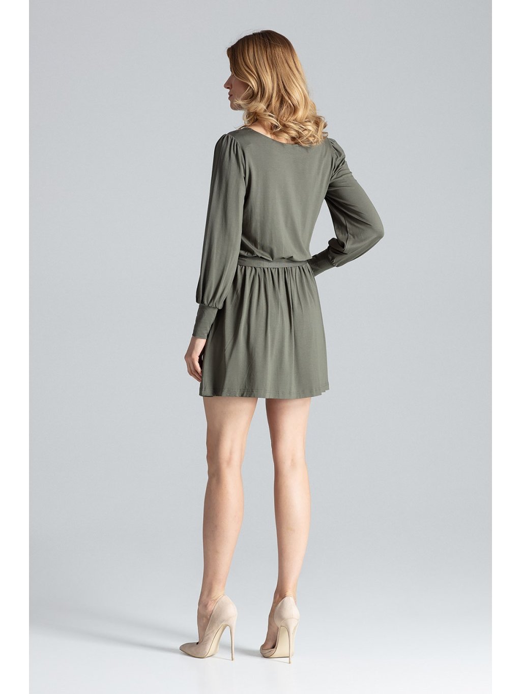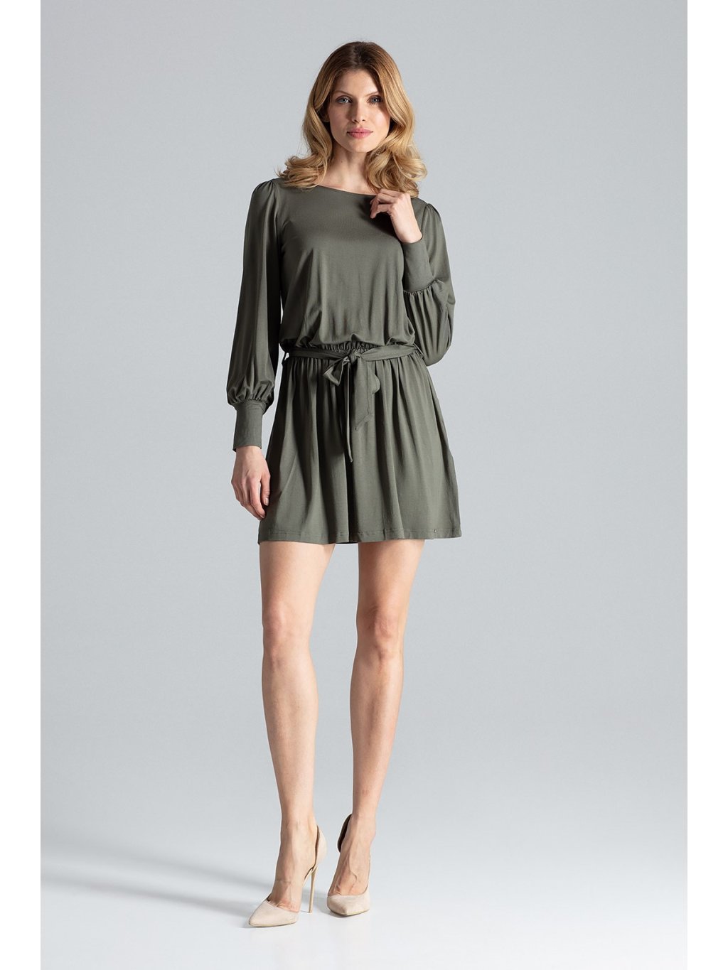 Az ujjak hosszúak, a szoknya rövidebb szabású.