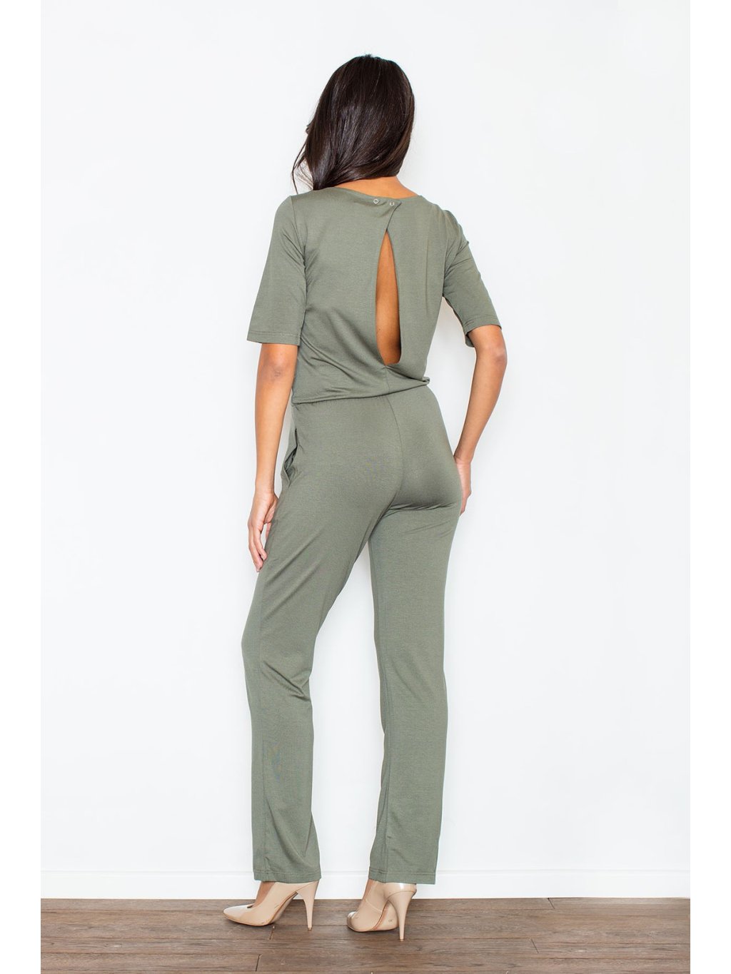 Olivazöld színű overál nyitott háttal