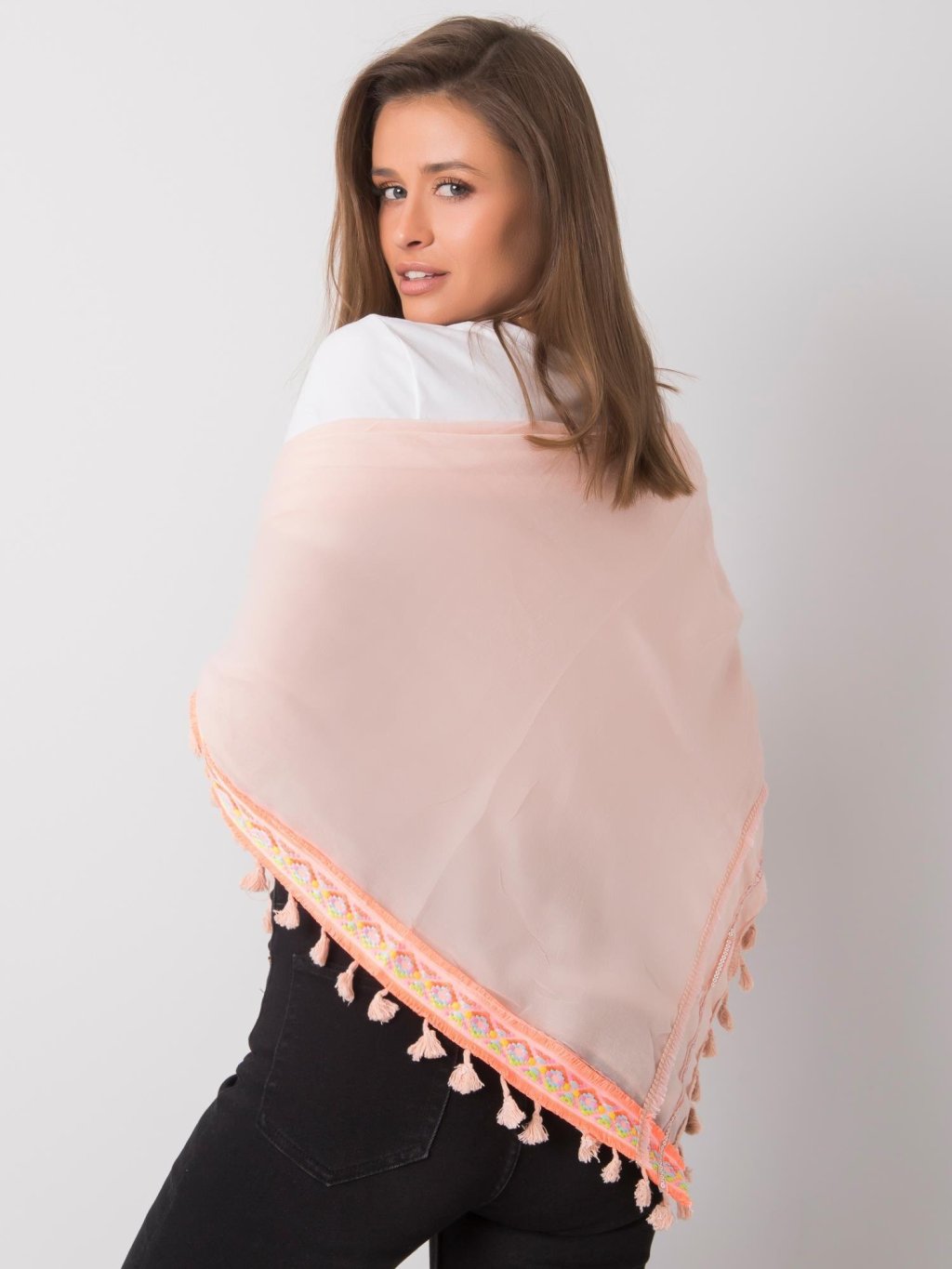 Őszibarack színű kendő színes szegéllyel