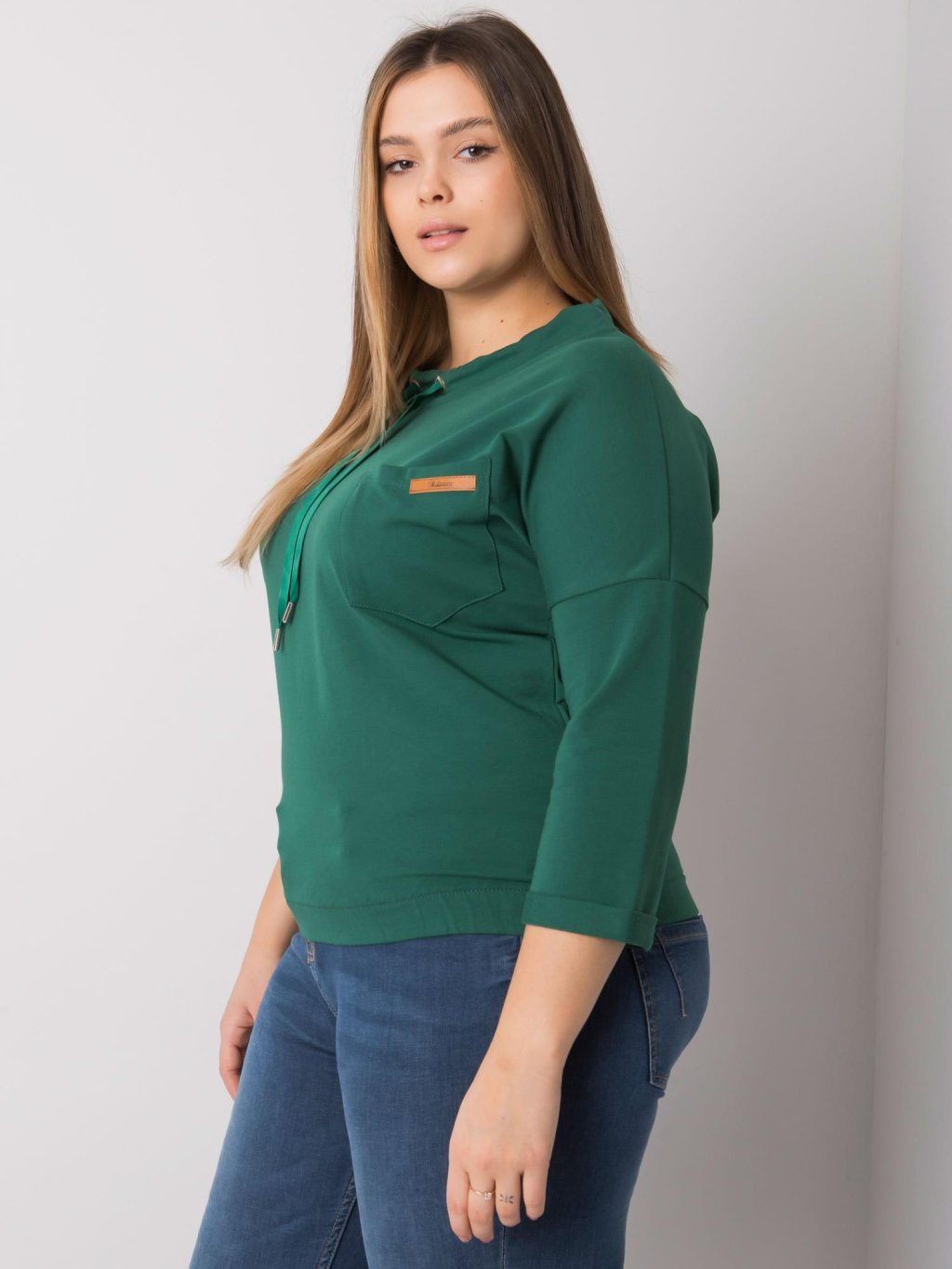 Pasadena zöld blúz zsebbel és húzózsinórral a nyakkivágásban