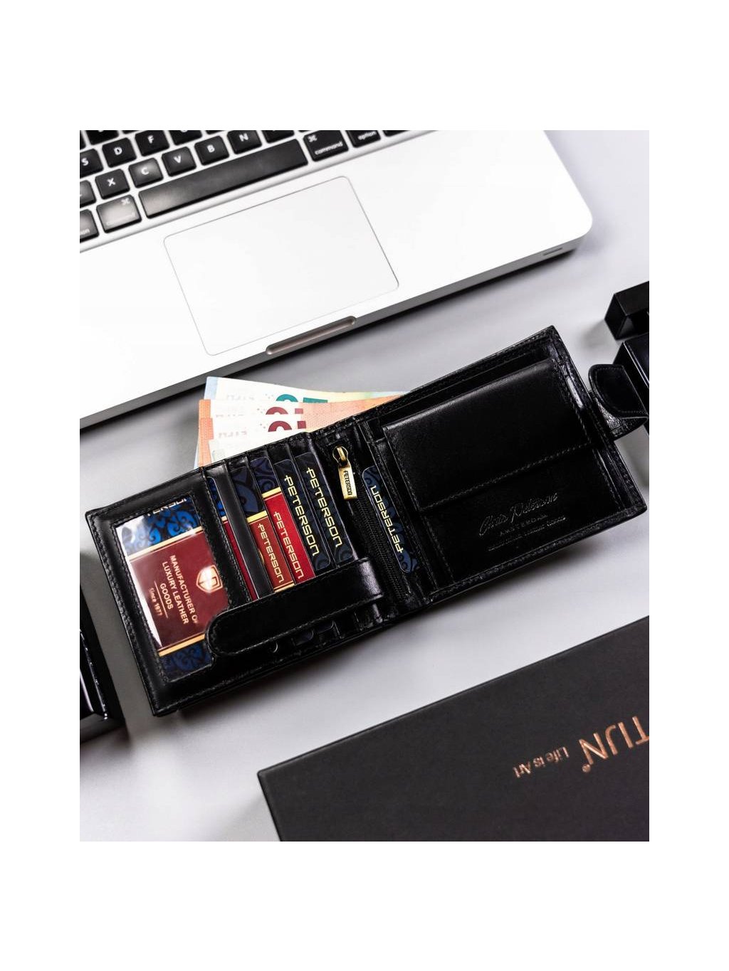 - 2 széles zseb a bankjegyek számára
