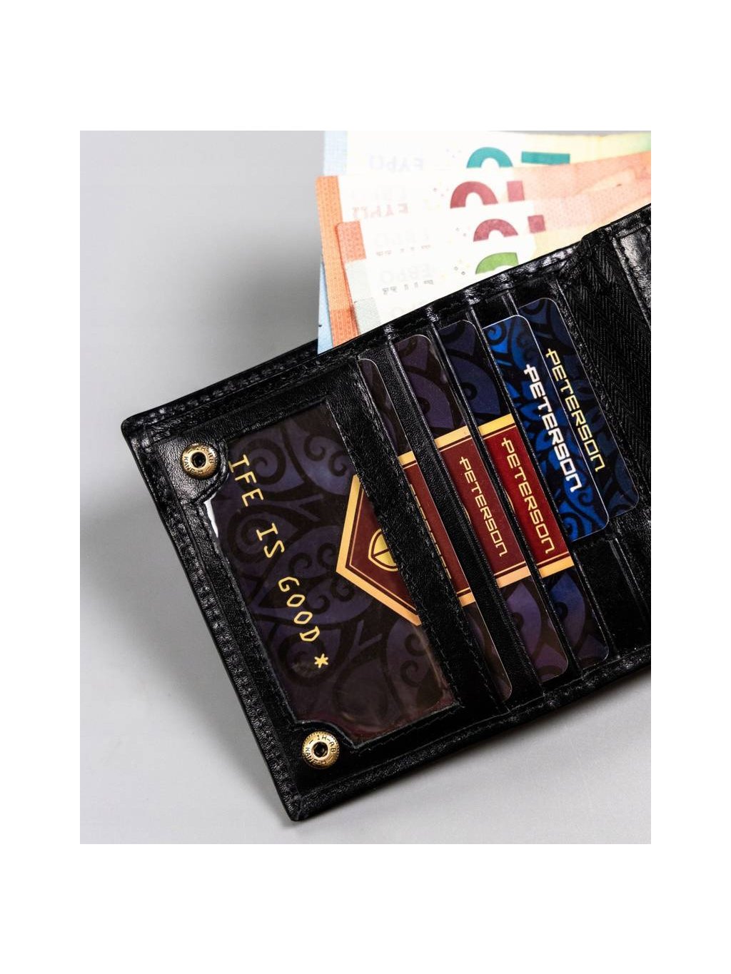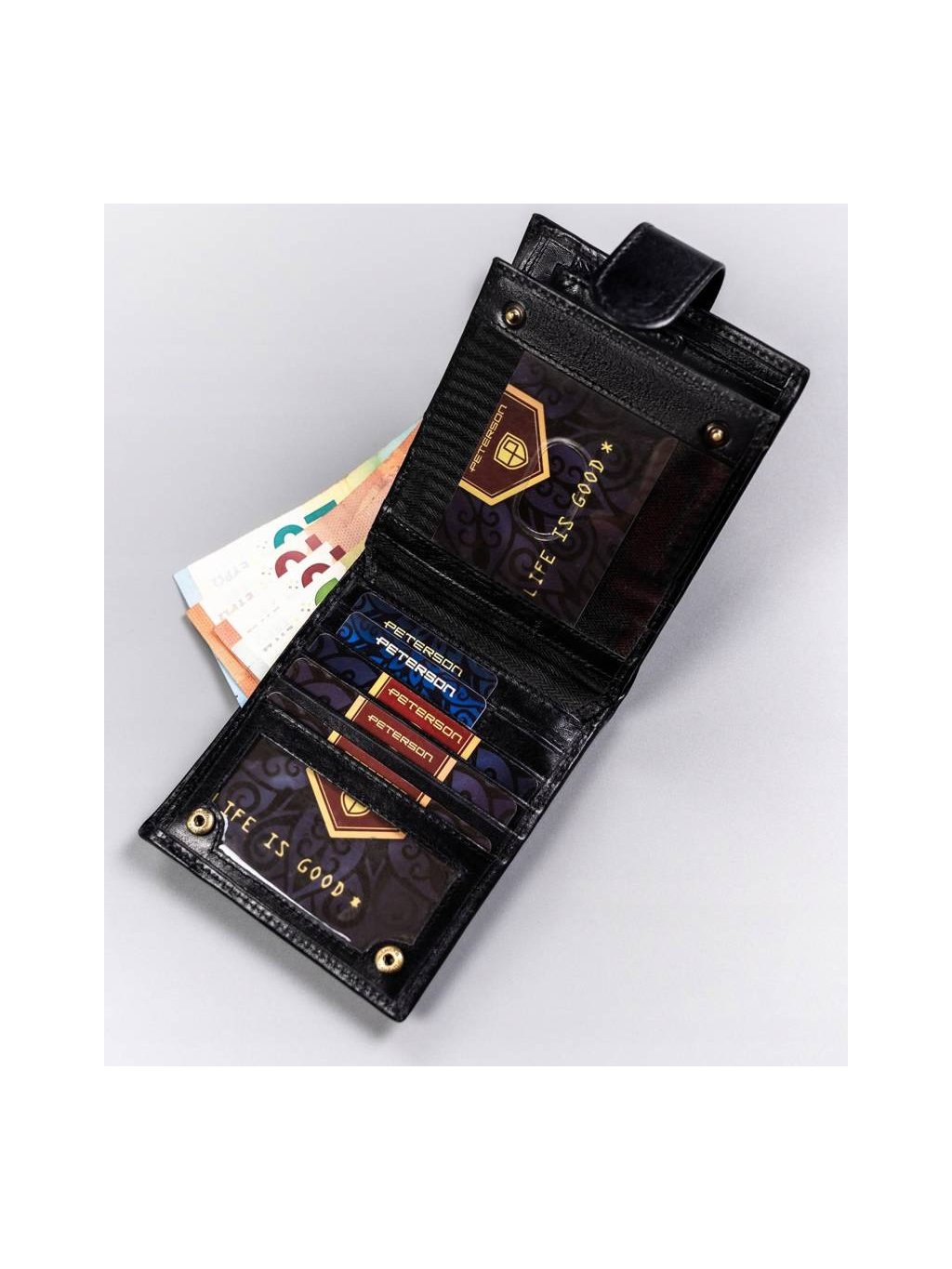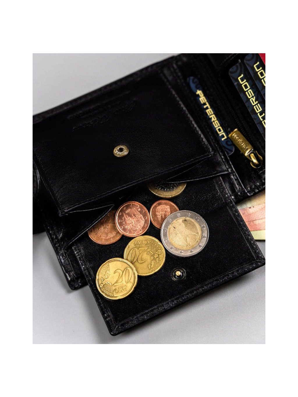 Peterson elegáns fekete bőr cipzáras pénztárca W092
