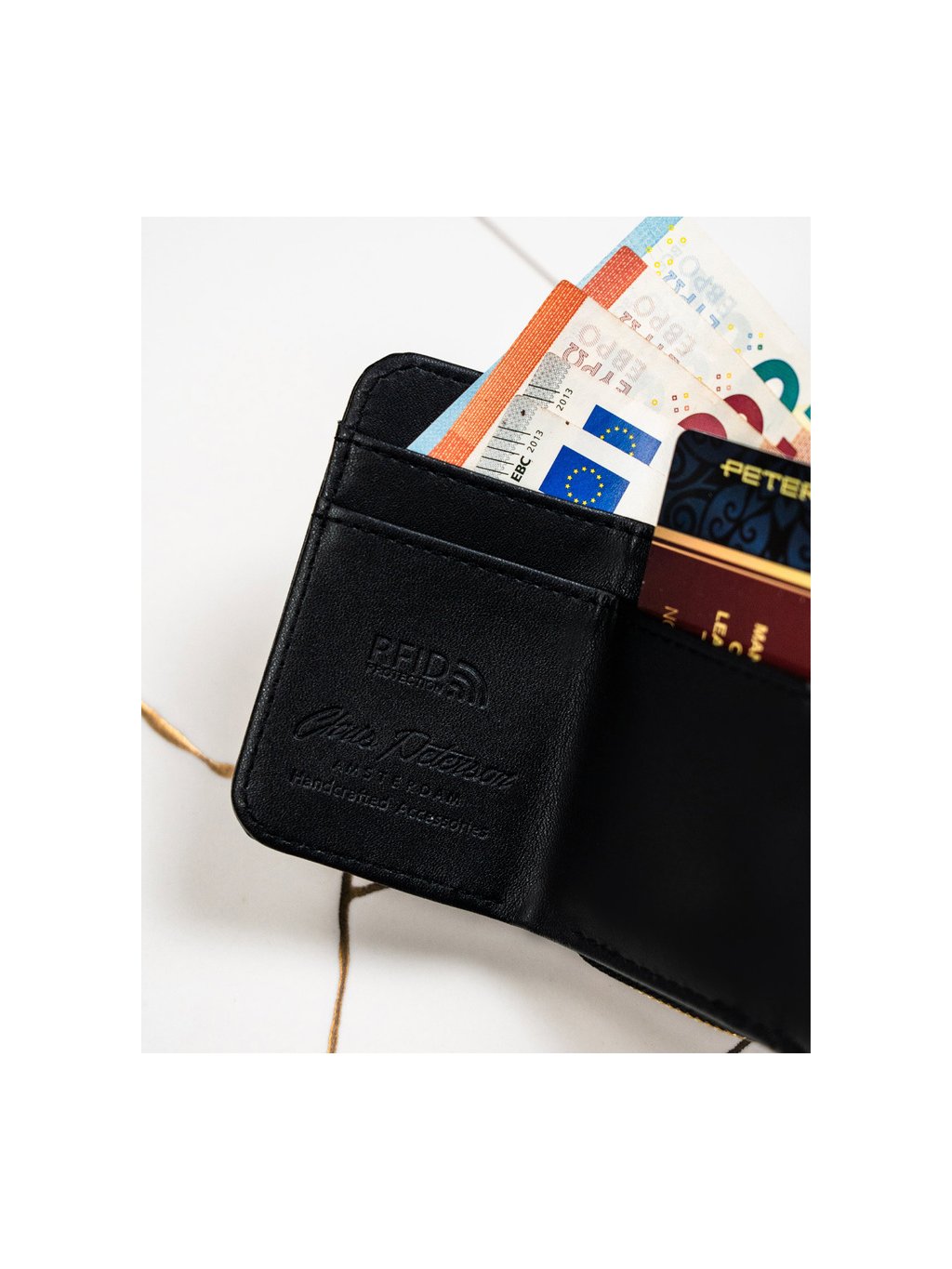 - RFID technológiával felszerelt, amely megvédi a kártyákat az illetéktelen adatolvasástól
