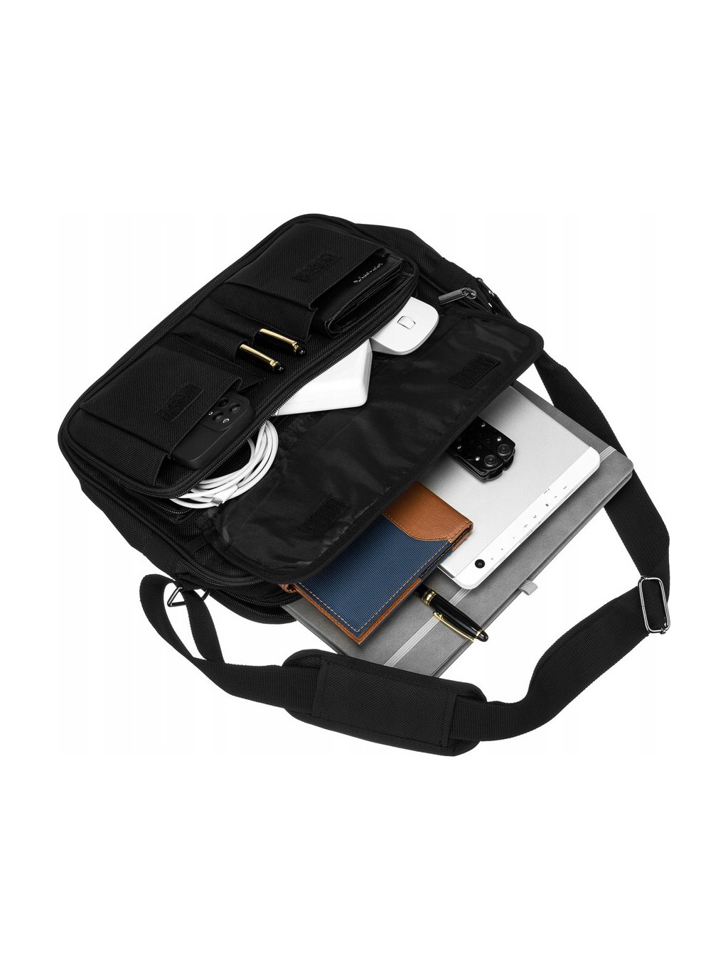 - a 3,8 cm széles és legfeljebb 140 cm hosszú állítható pánt lehetővé teszi a táska többféle módon történő hordozását