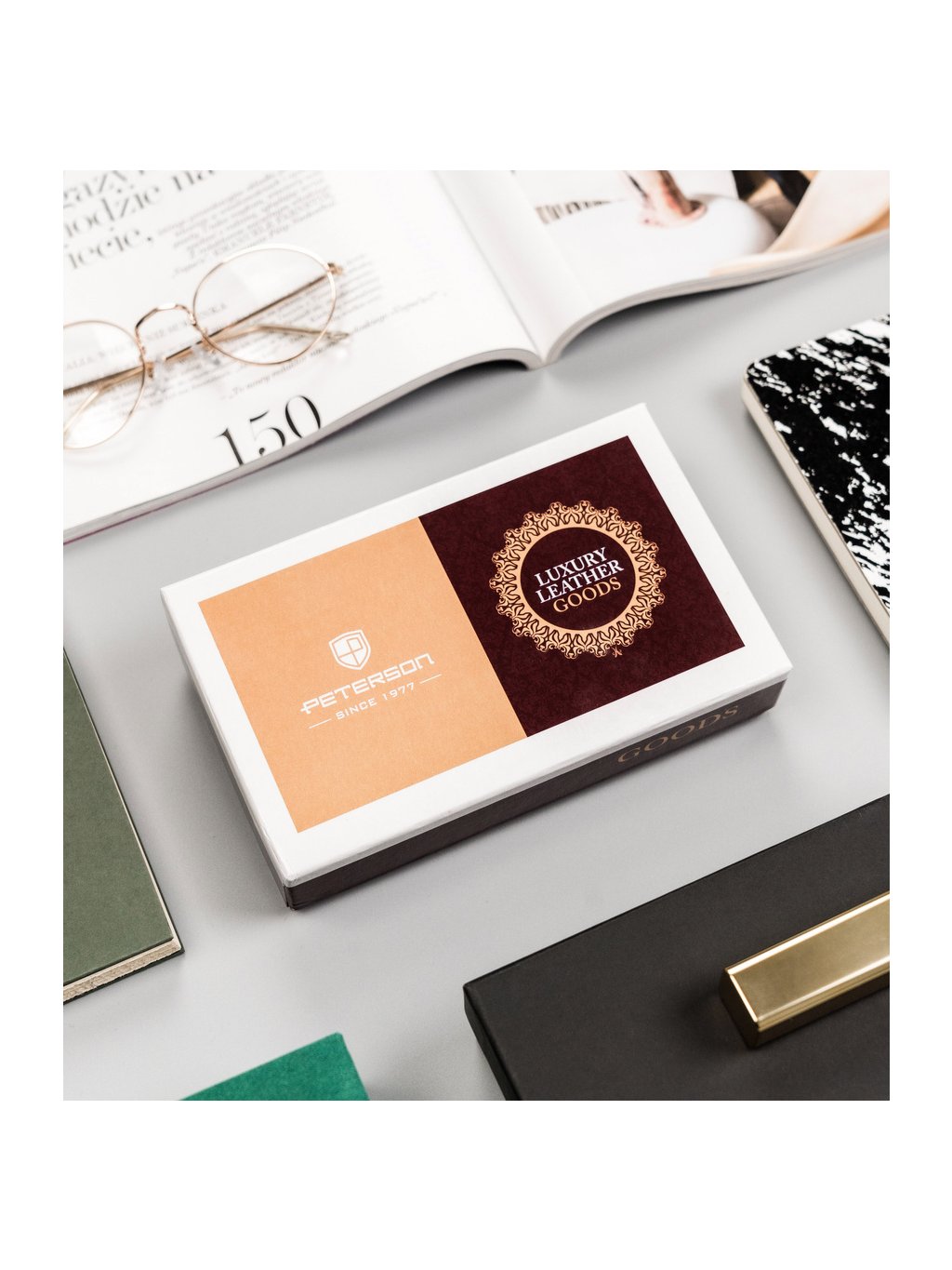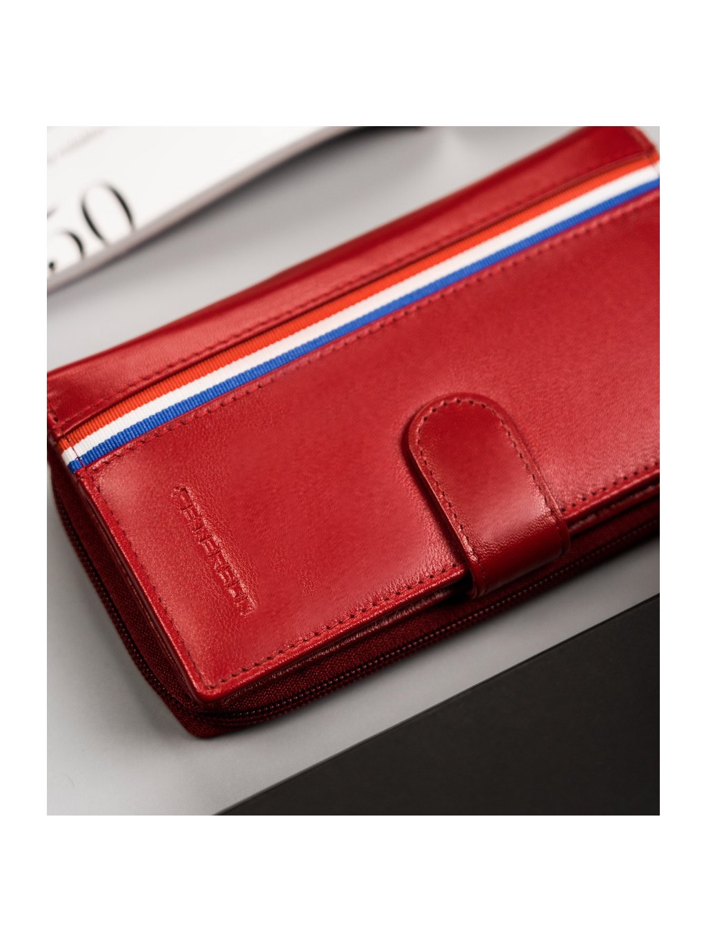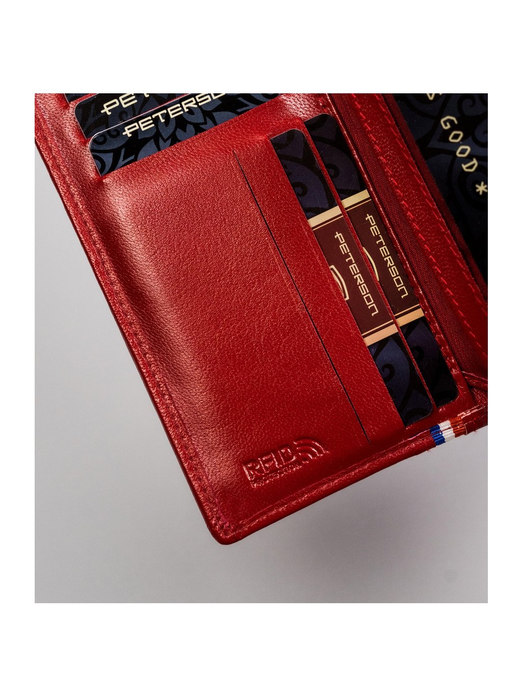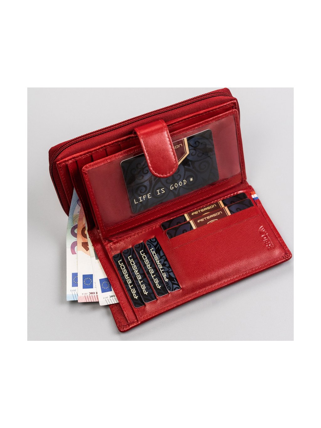 Peterson Piros bőr pénztárca csíkkal Y350