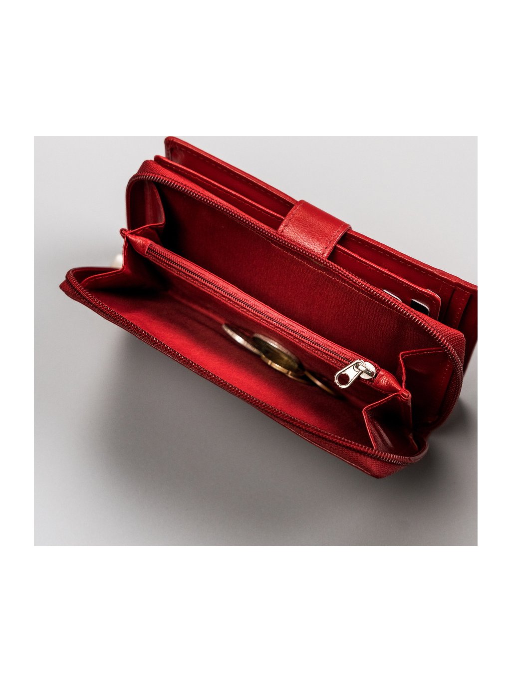 - 1 külső érmezseb. A zseb háromszoros, cipzárral elválasztva