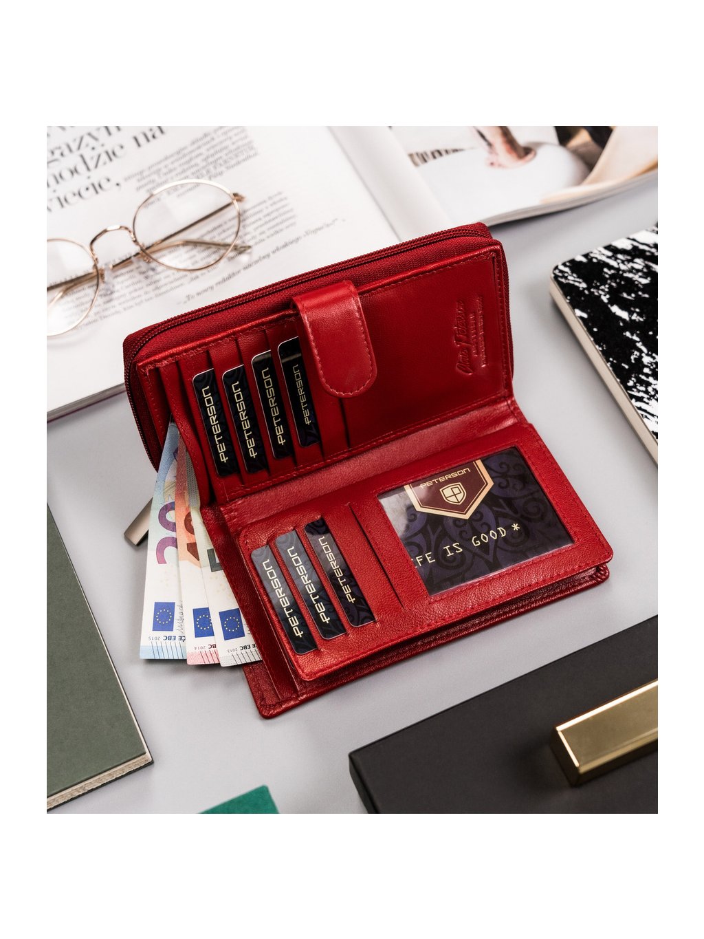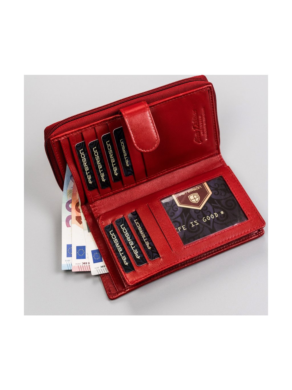 Peterson piros bőr pénztárca Y348
