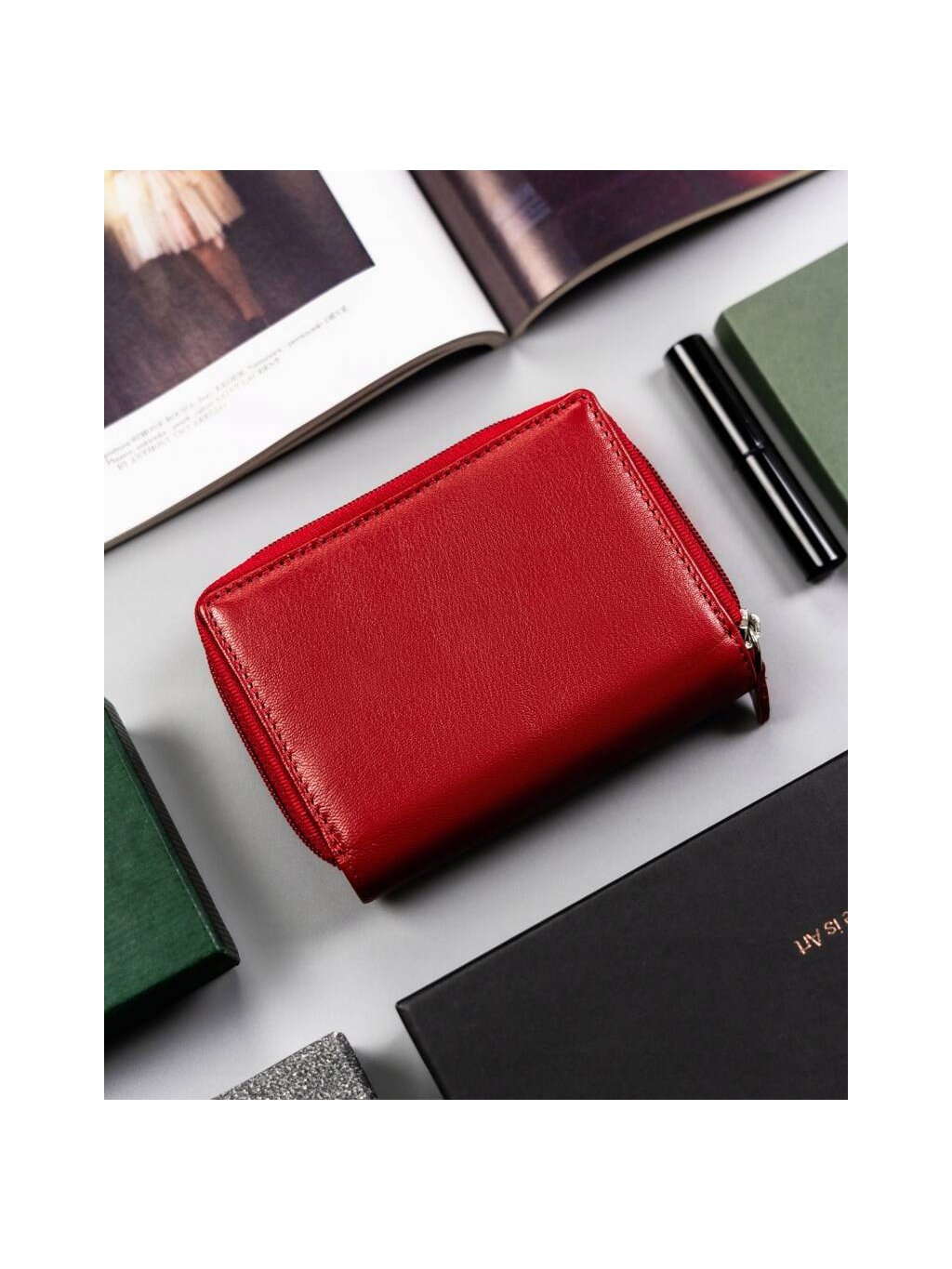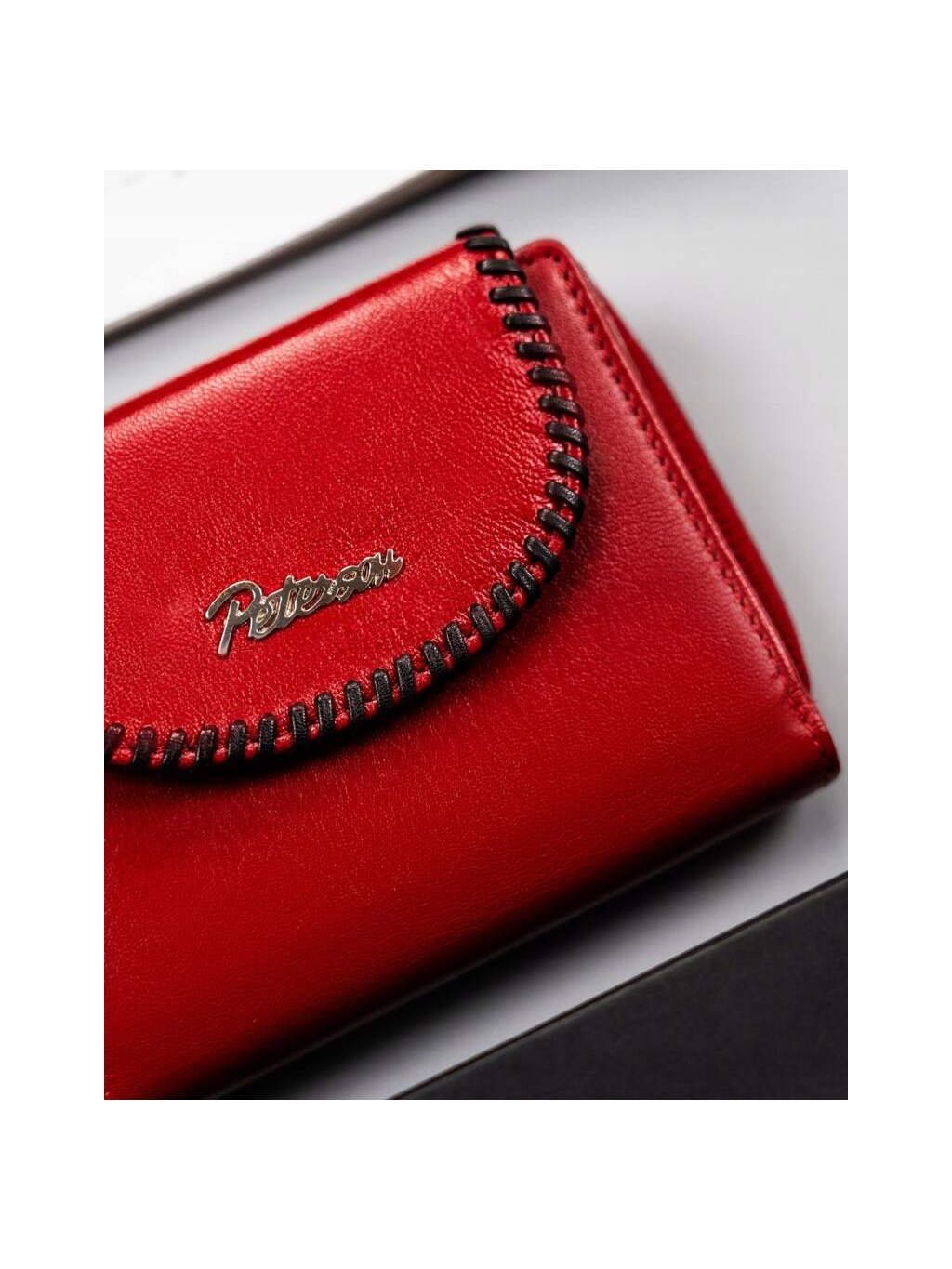 Peterson piros közepes bőr pénztárca varrással Y443