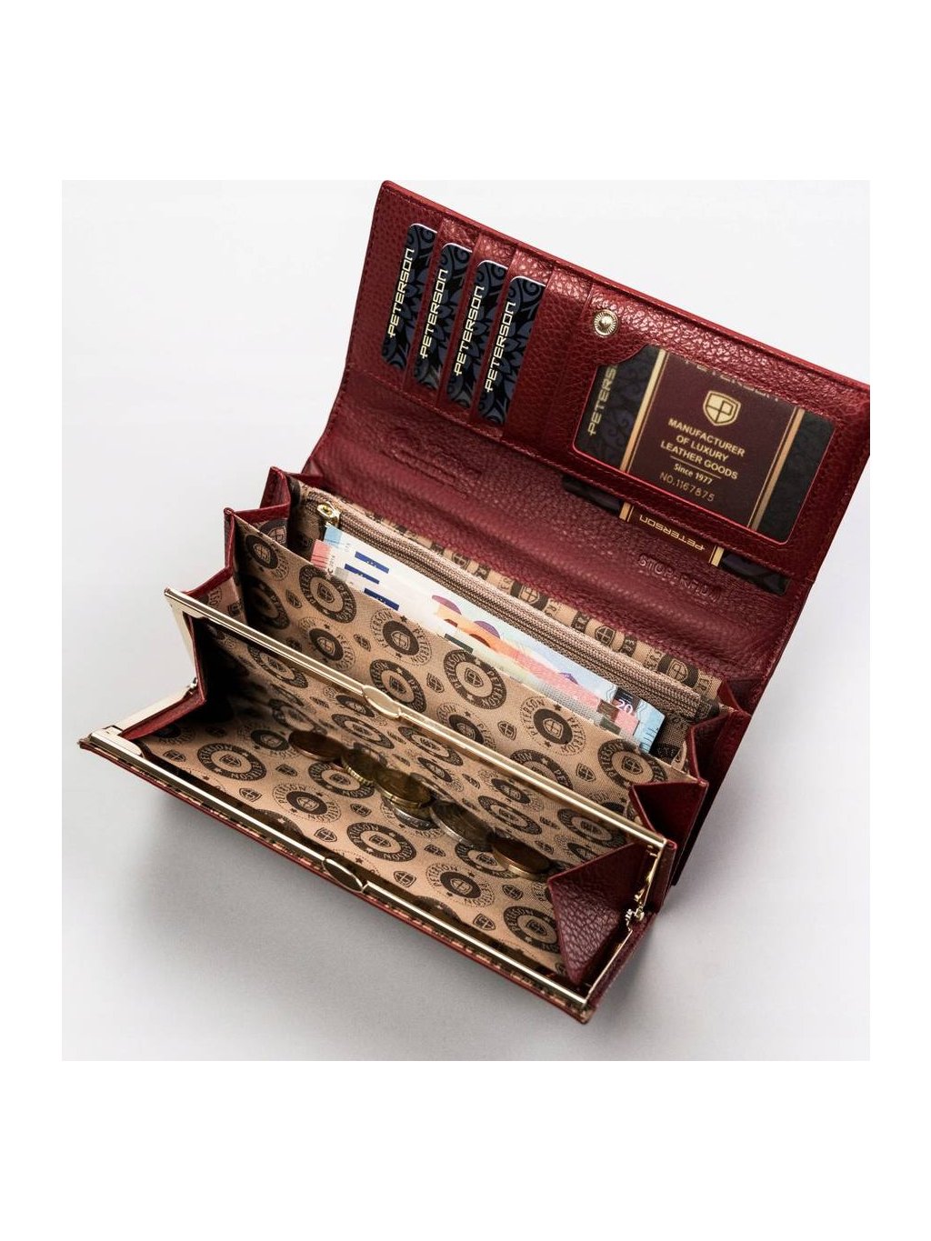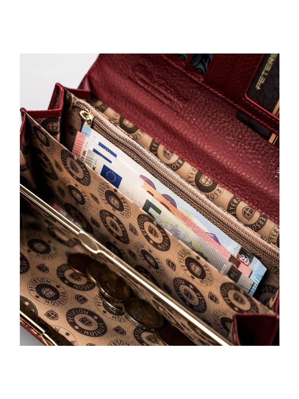 • 1 cipzáras rekesz a pénztárca középső részén