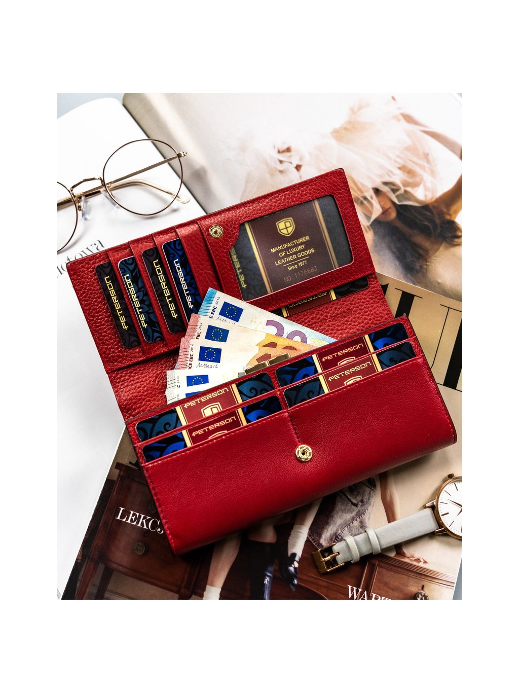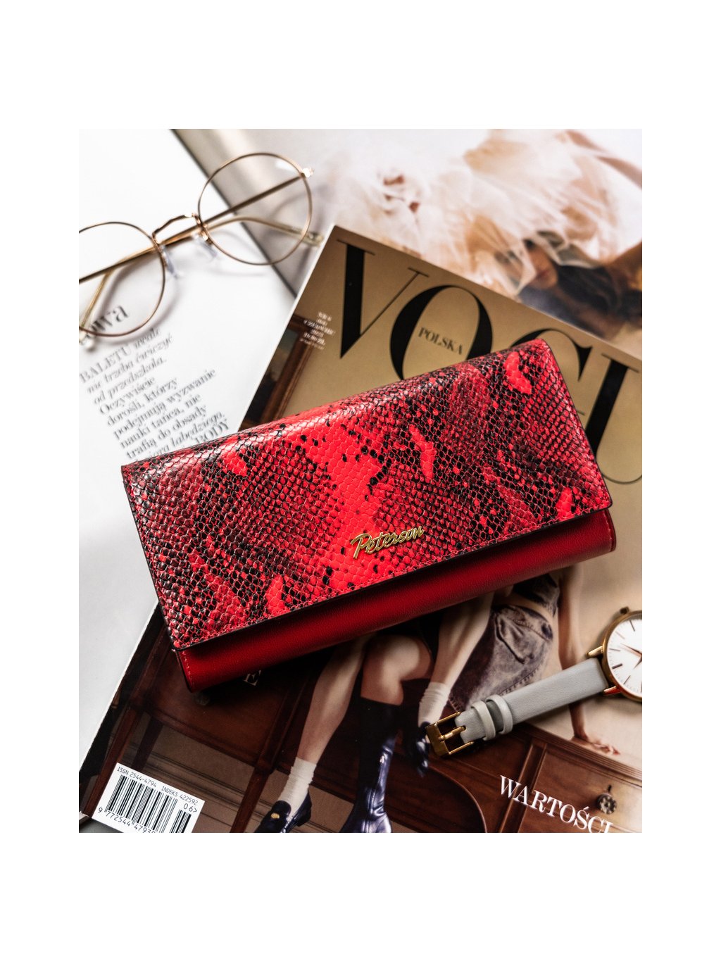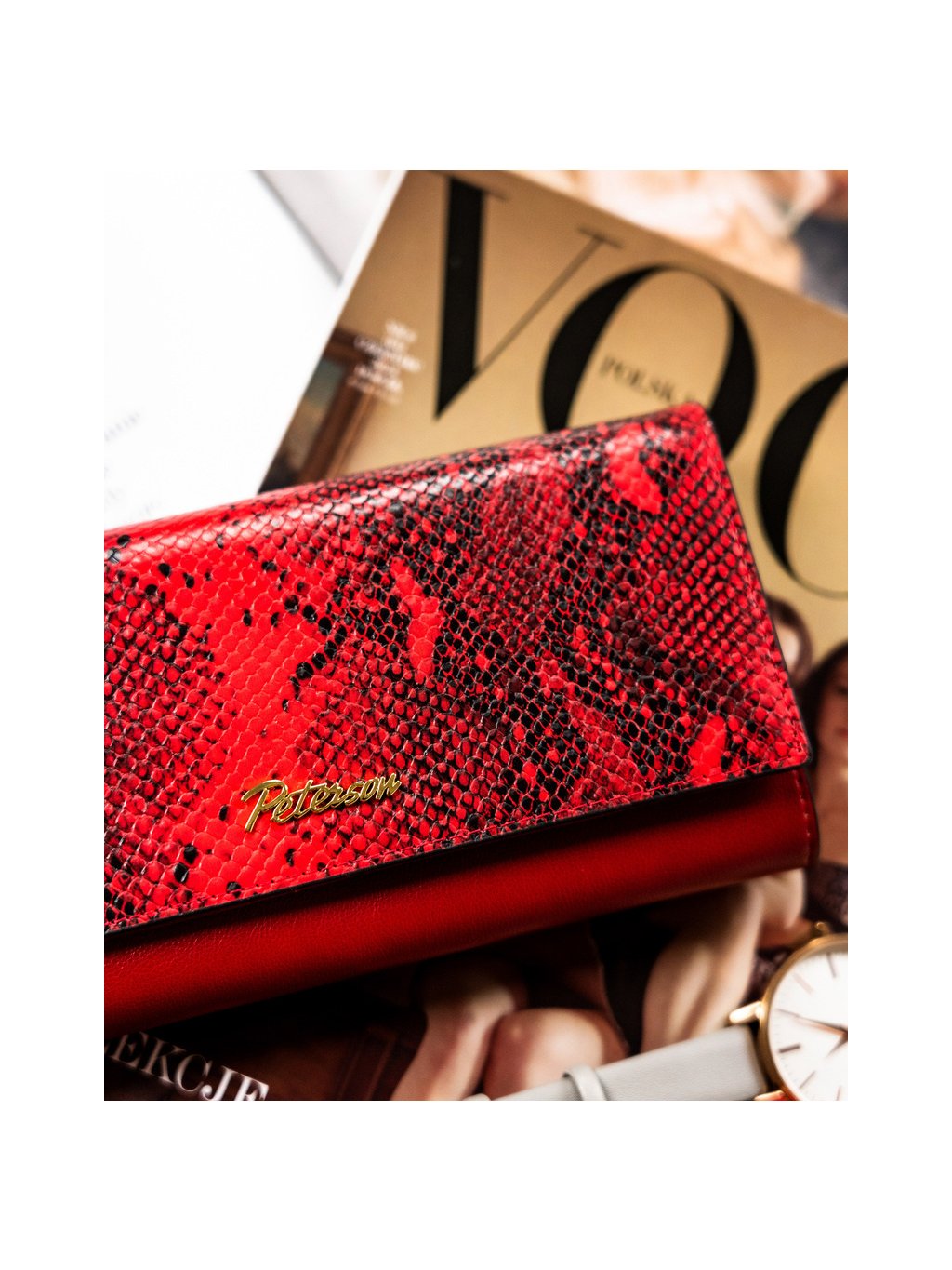 Peterson vörös kígyóbőr bőr pénztárca Y357