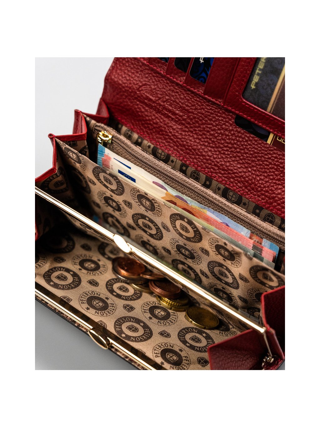- 1 cipzáras rekesz a pénztárca közepén