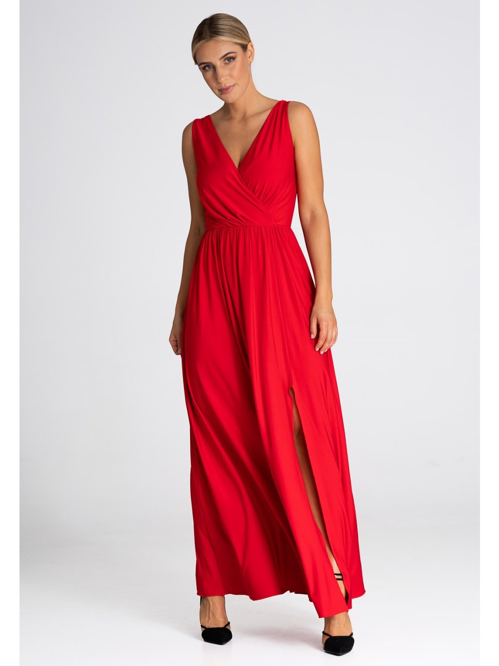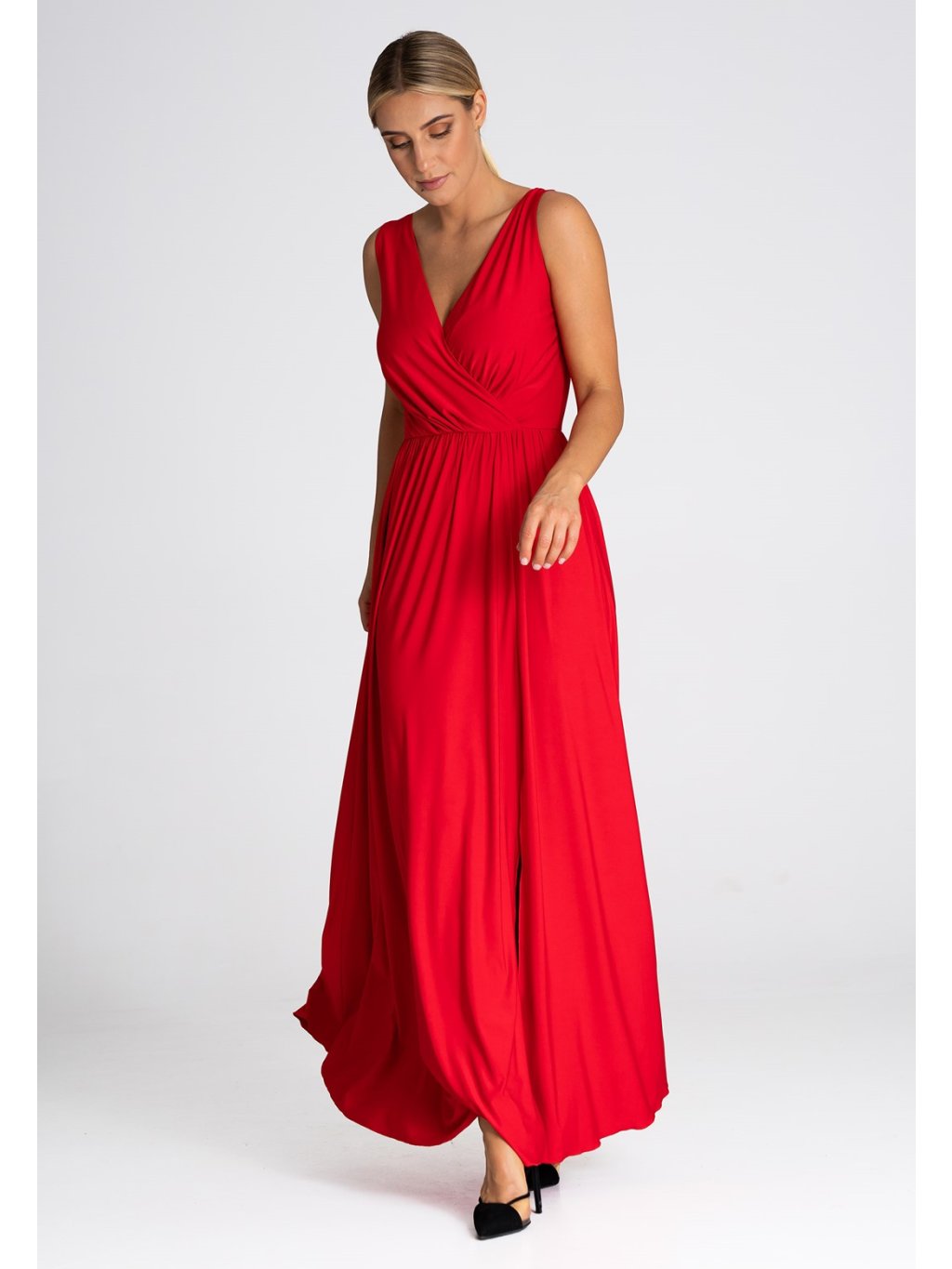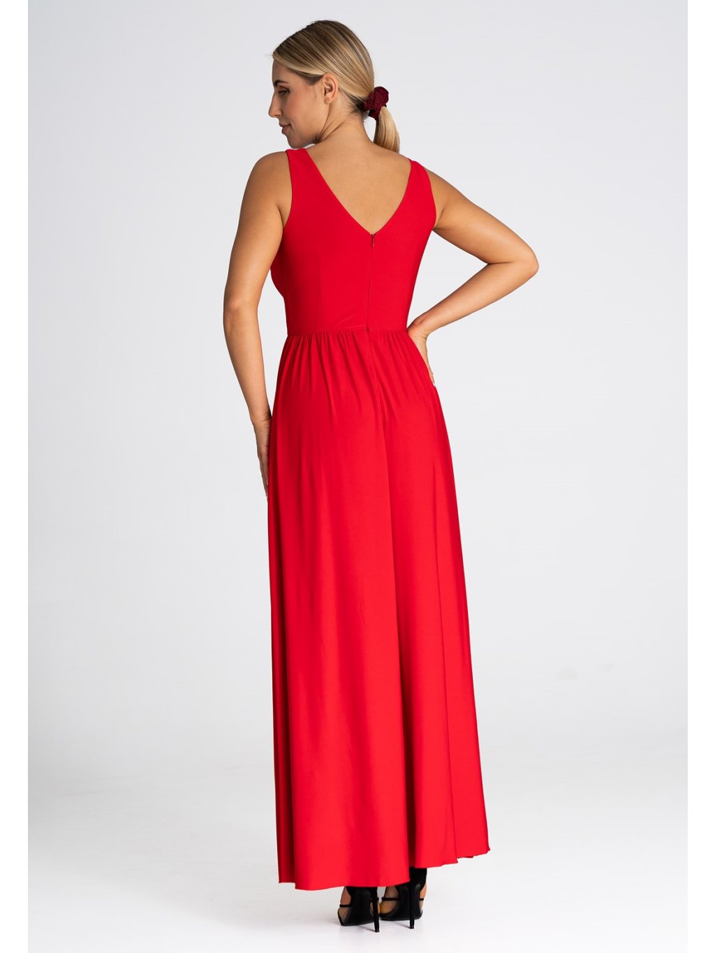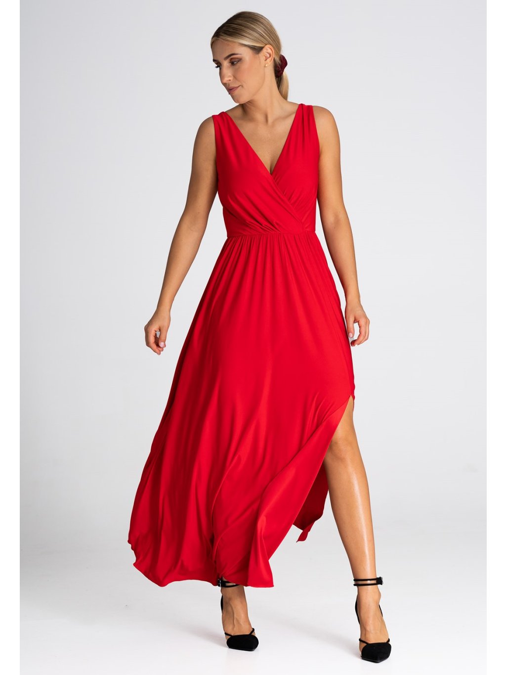 Piros maxi ruha hasított