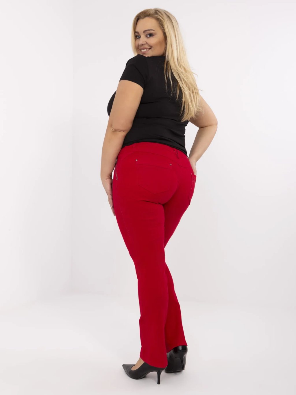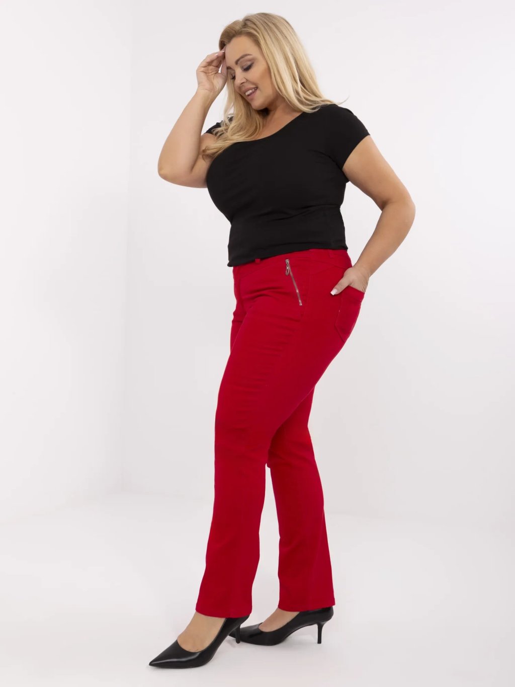 Piros női plus size pamut nadrág