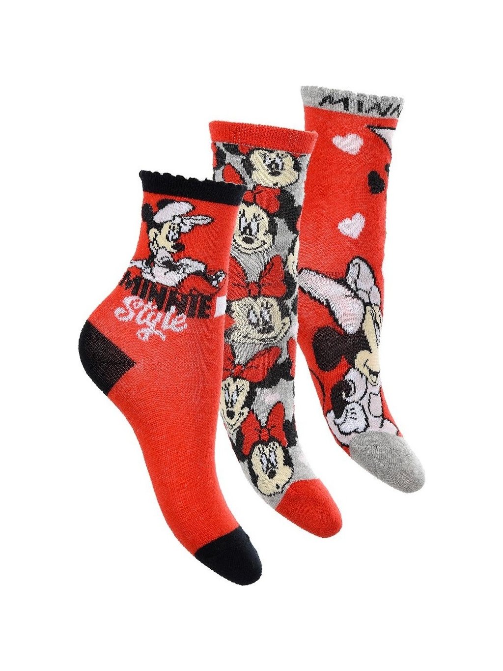 Piros / szürke / piros lányos zokni (3 pár) - Minnie Mouse