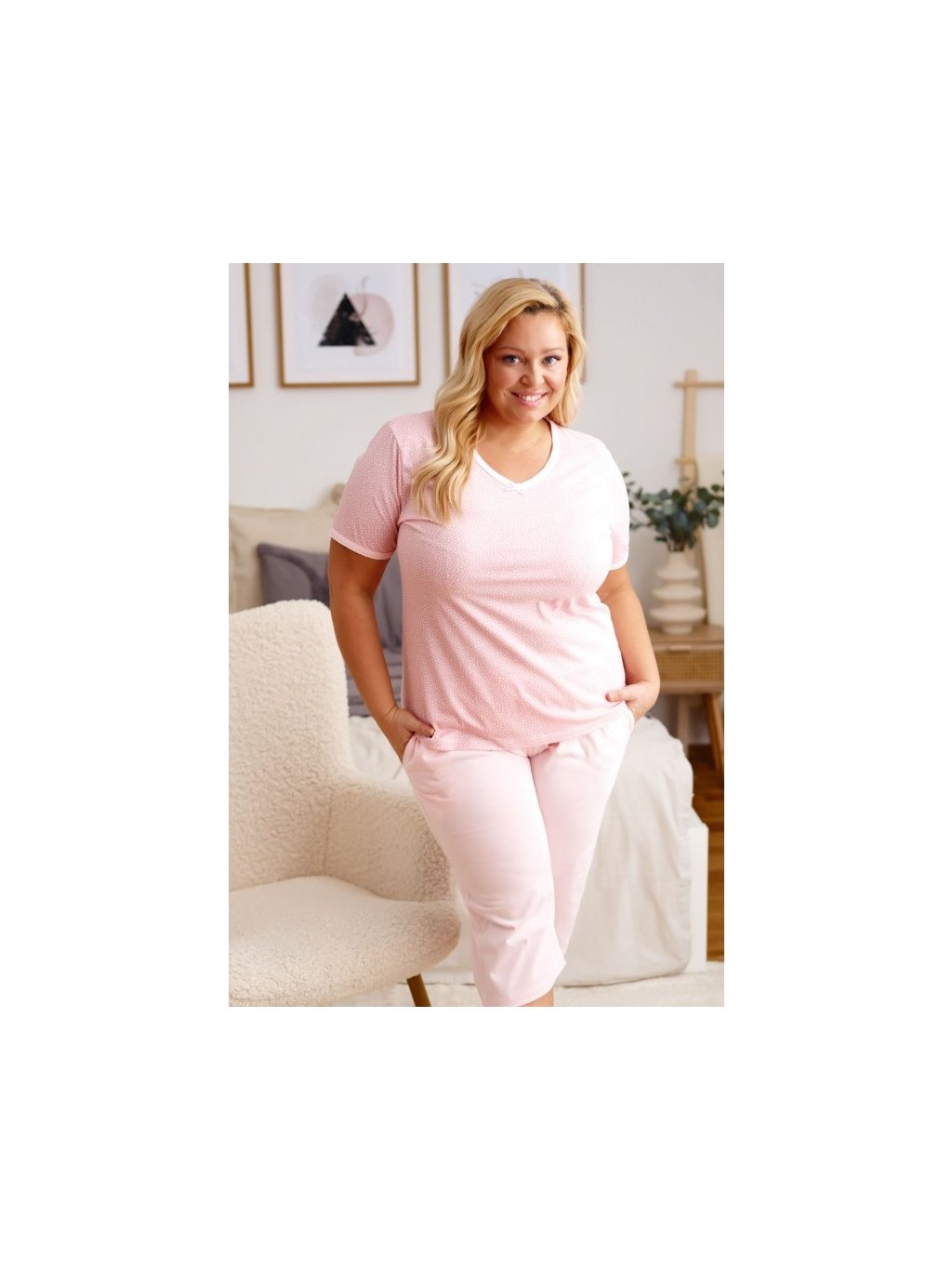 Púder plus size pizsama rövid ujjal