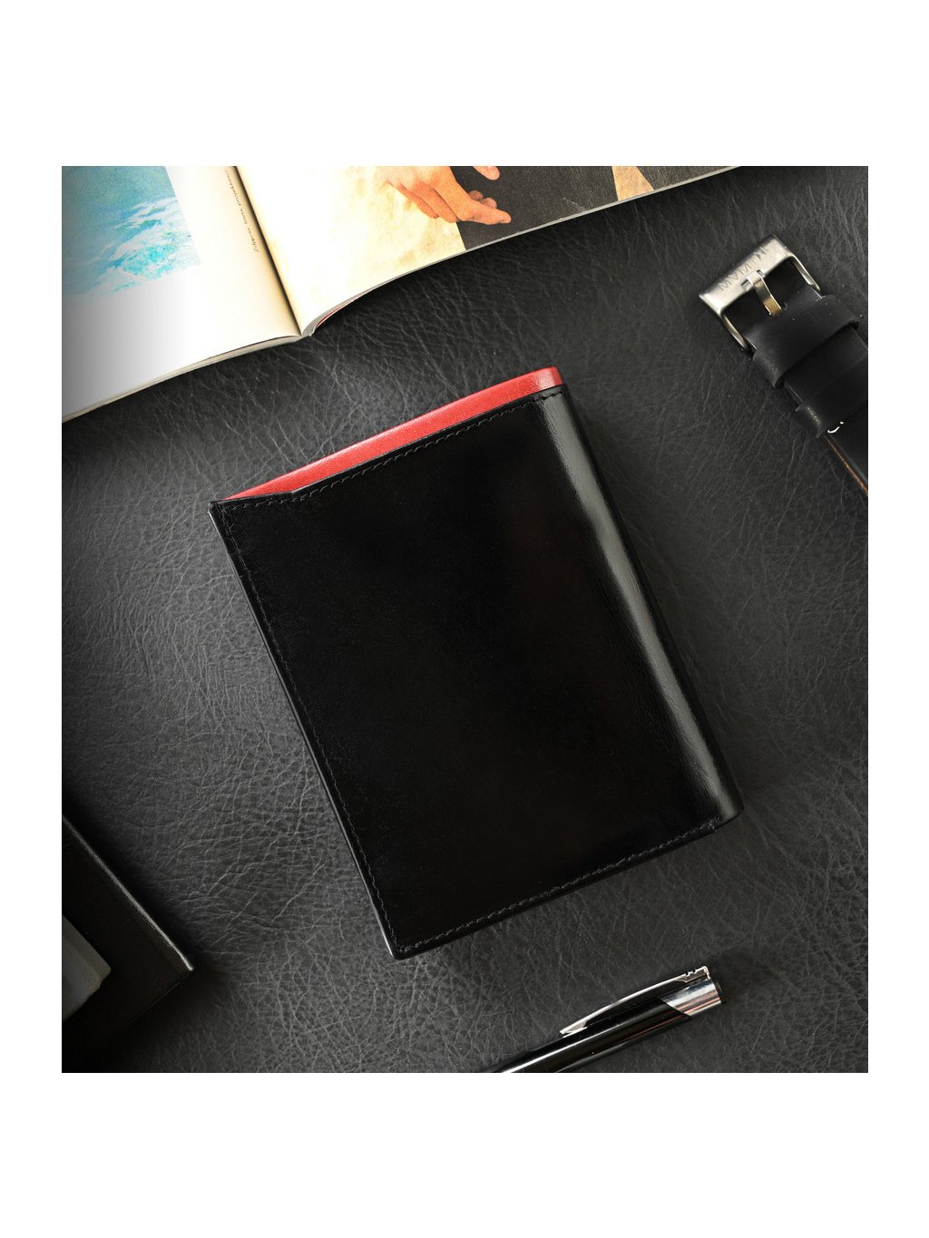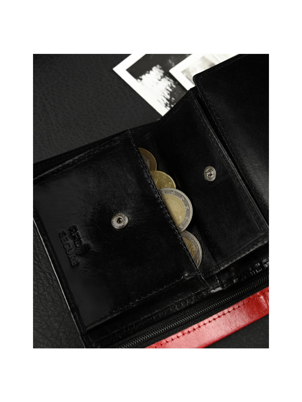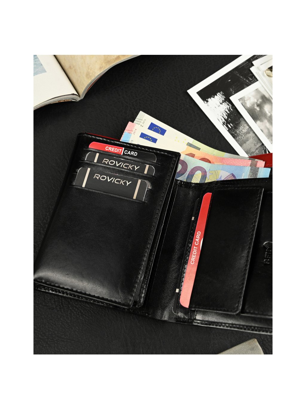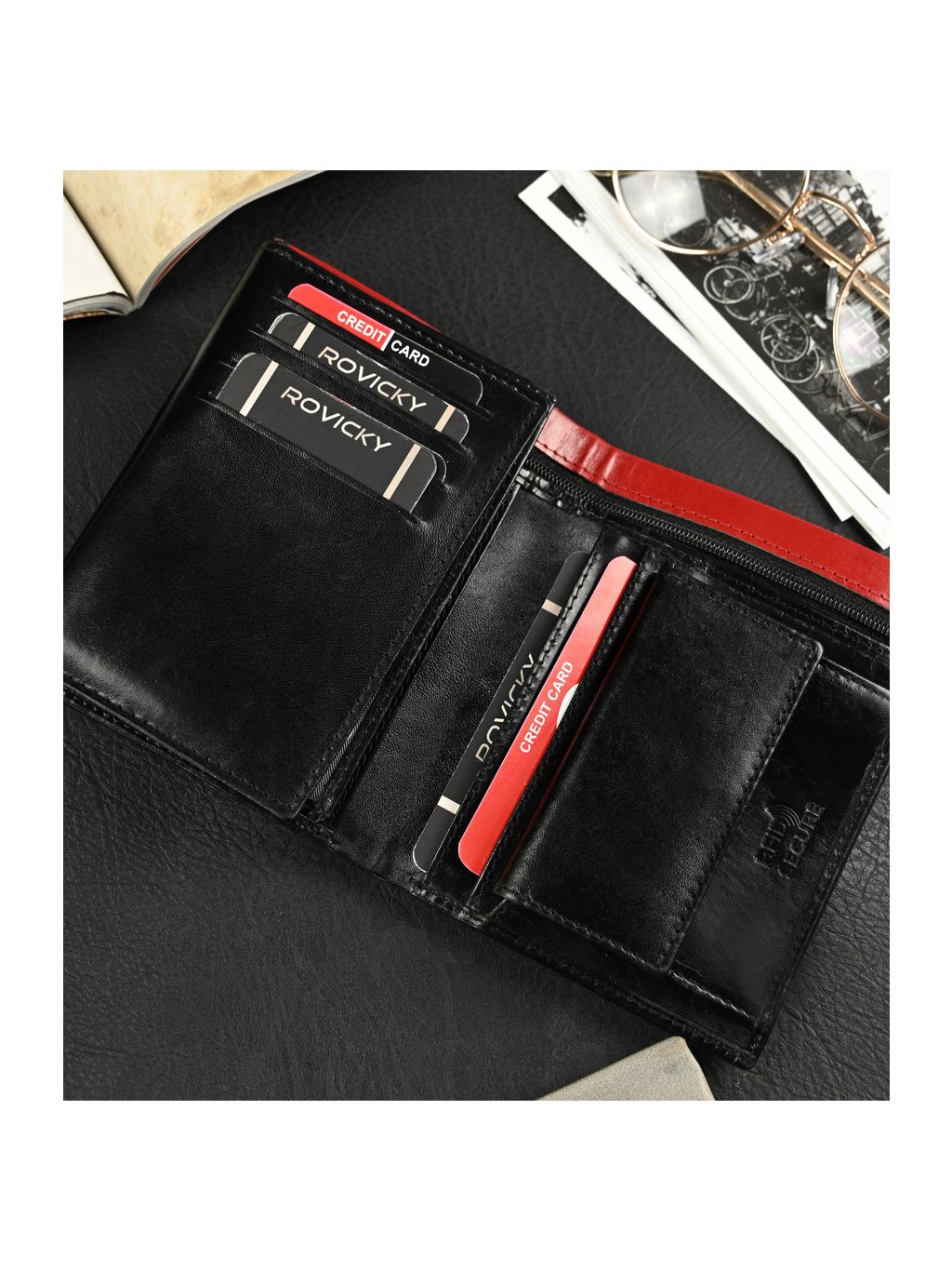 - belül 11 hely a kártyáknak, 4 hely a nagyobb dokumentumoknak, egy cipzáras zseb, egy pénzérme zseb a szabadalomnak, 2 rekesz a bankjegyeknek
