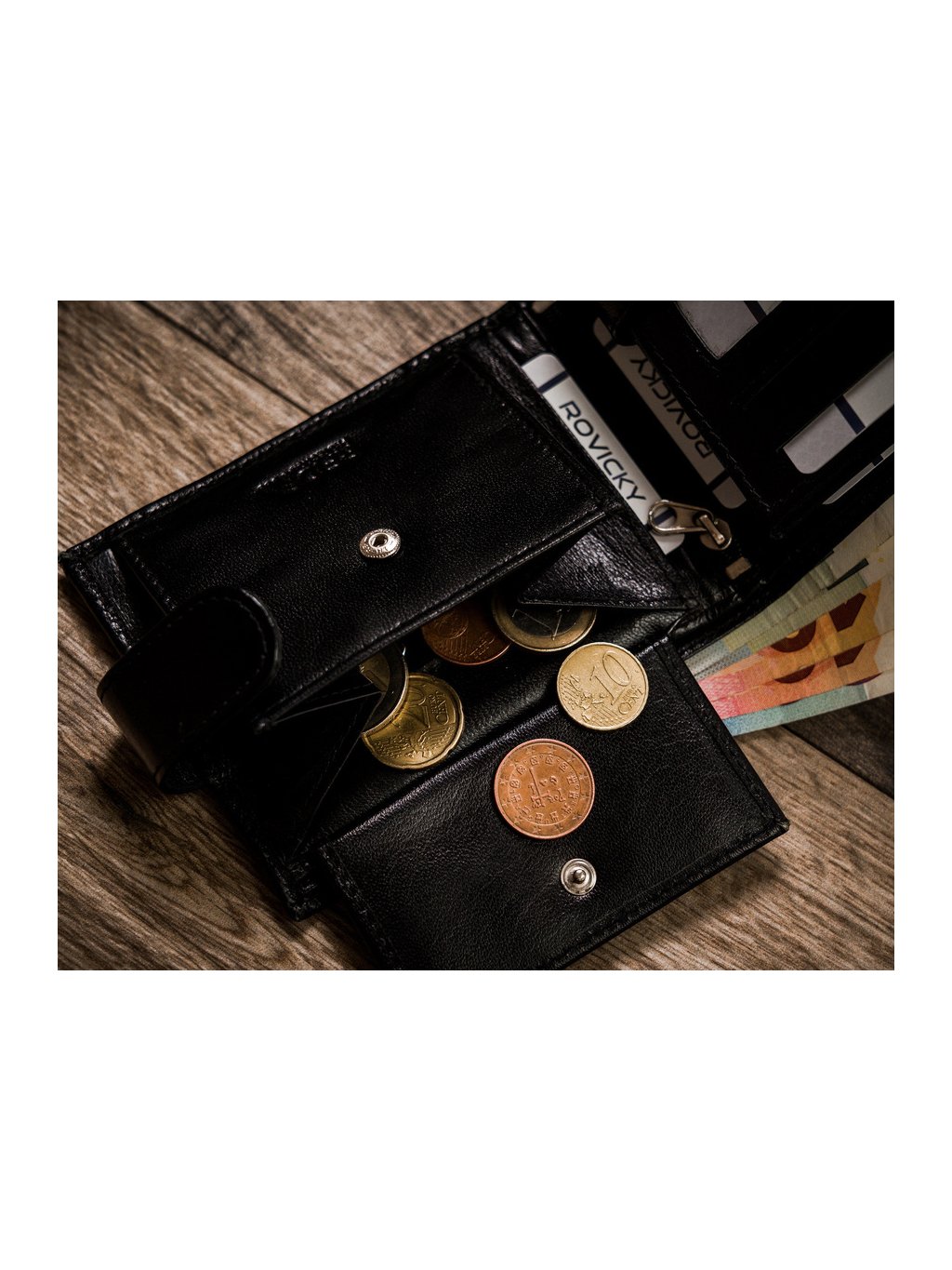 - belül van egy zseb az érméknek, 2 rekesz bankjegyeknek, 11 hely a kártyáknak, 4 hely a nagyobb dokumentumoknak, egy cipzáras zseb