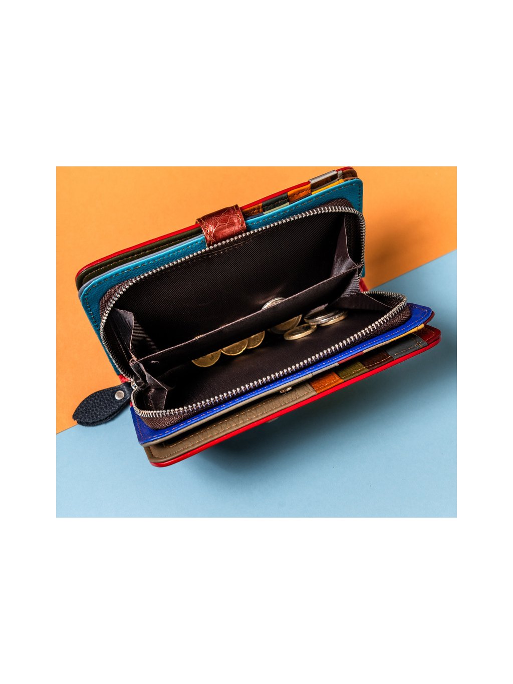 - a pénztárca külső részét gyönyörű, színes patchwork díszíti