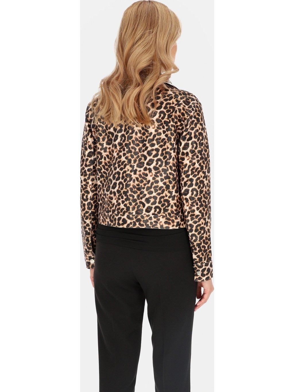 Rövid női átmeneti kabát leopárdmintás