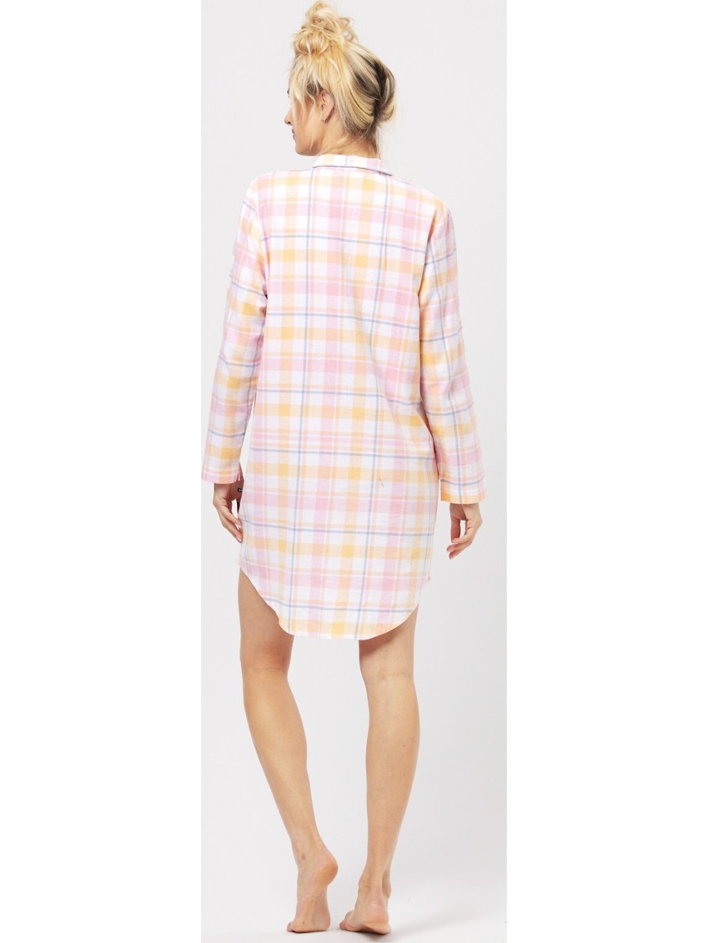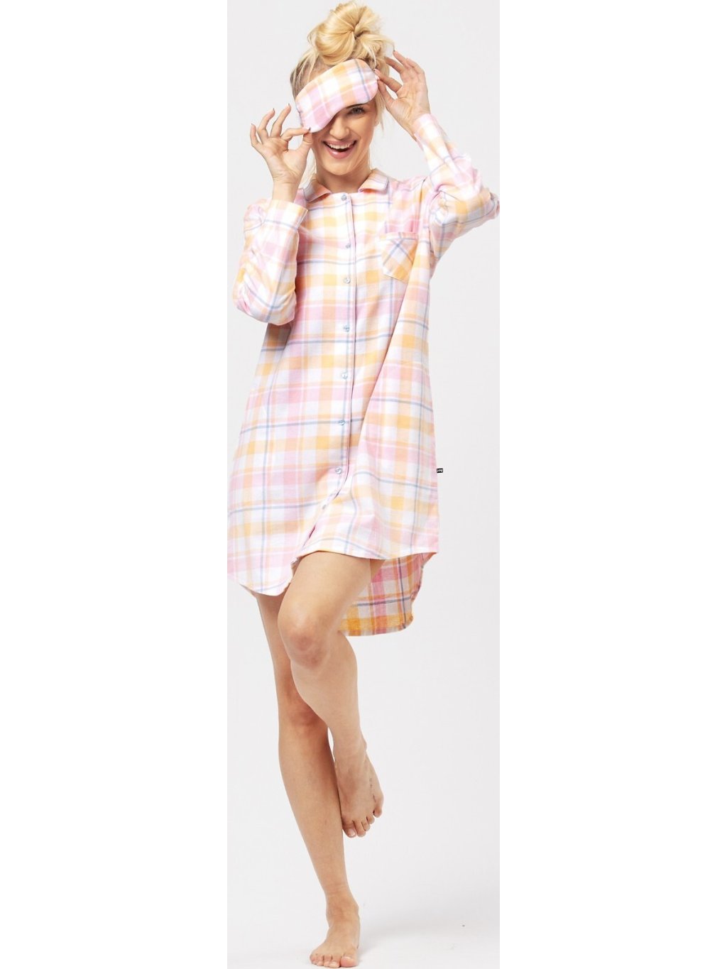 Rózsaszín és sárga kockás flanel hálóing Key Flannel