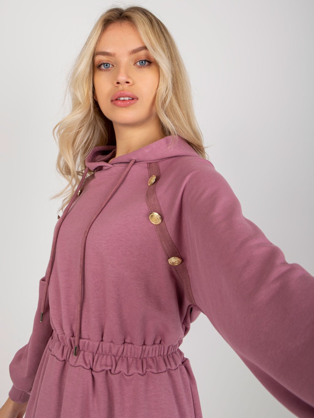 Rózsaszín hosszabb pulóver ruha kapucnival