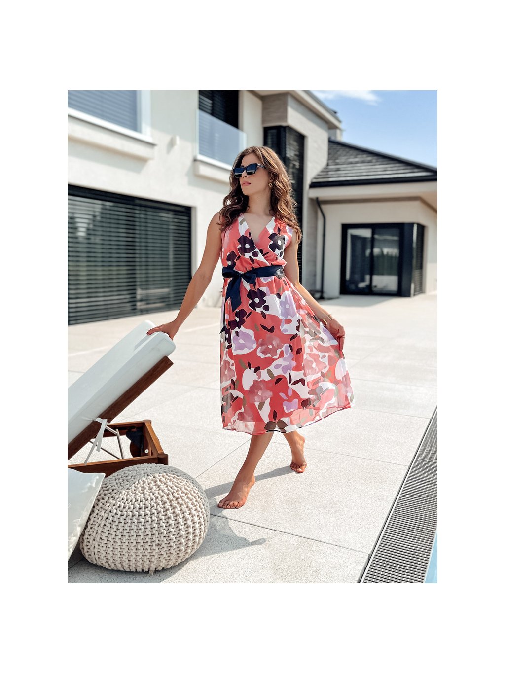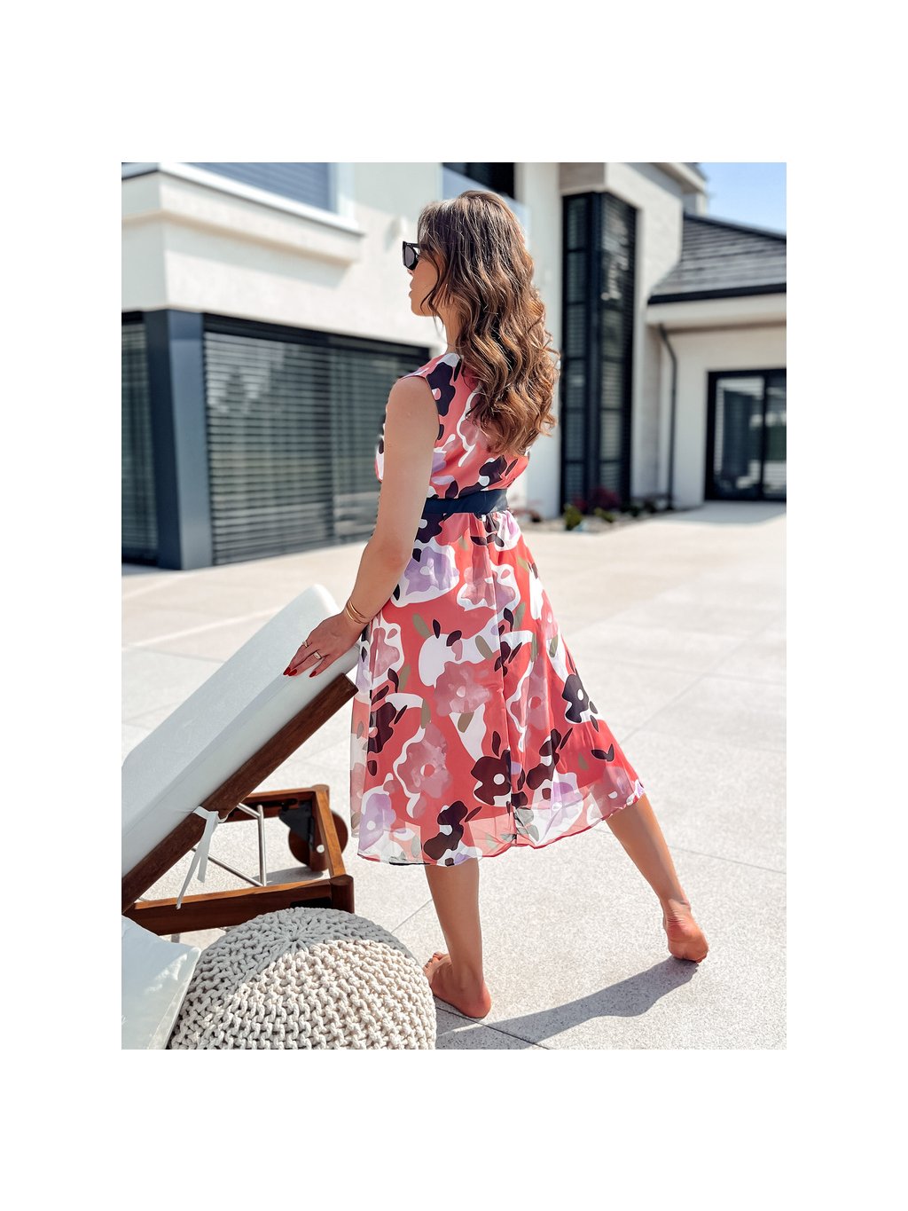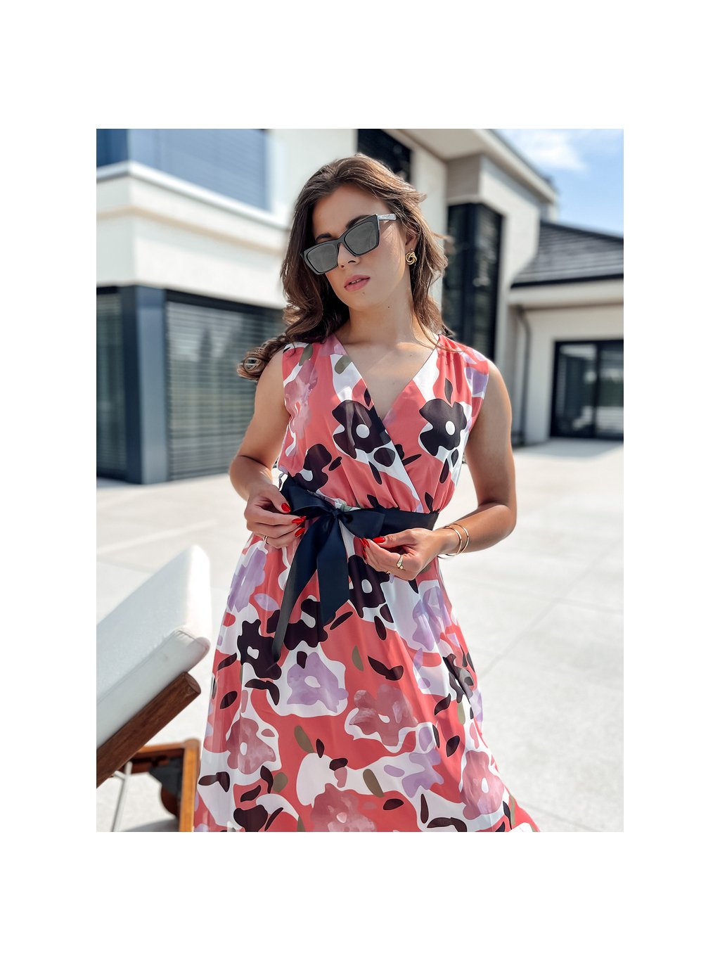 Rózsaszín mintás midi ruha masnival CARIBBEA