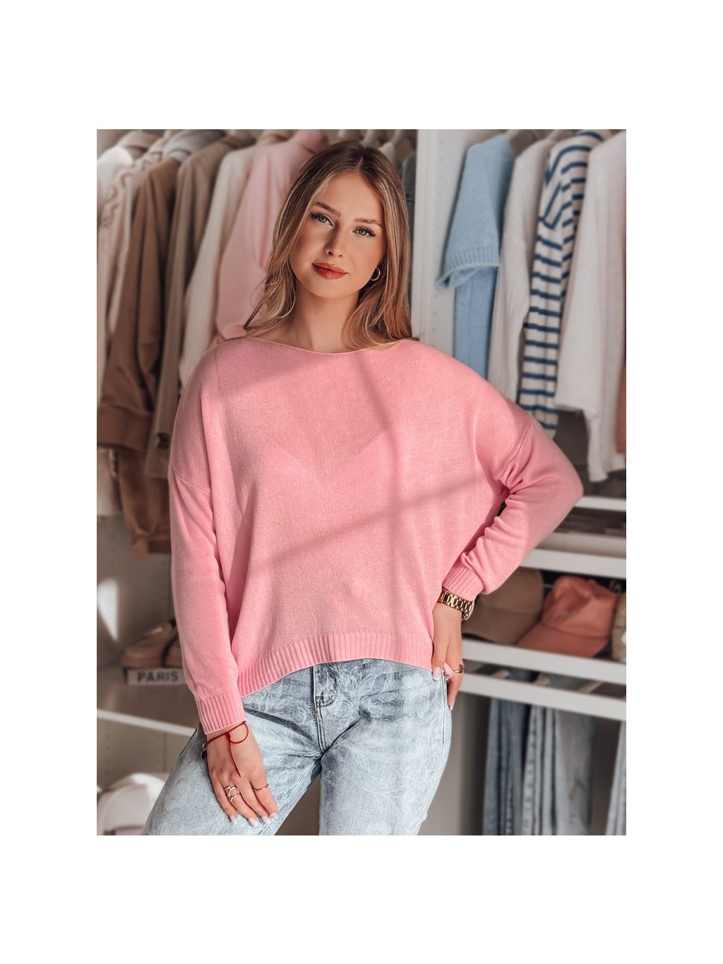 Rózsaszín női aszimmetrikus oversize pulóver SENZIA