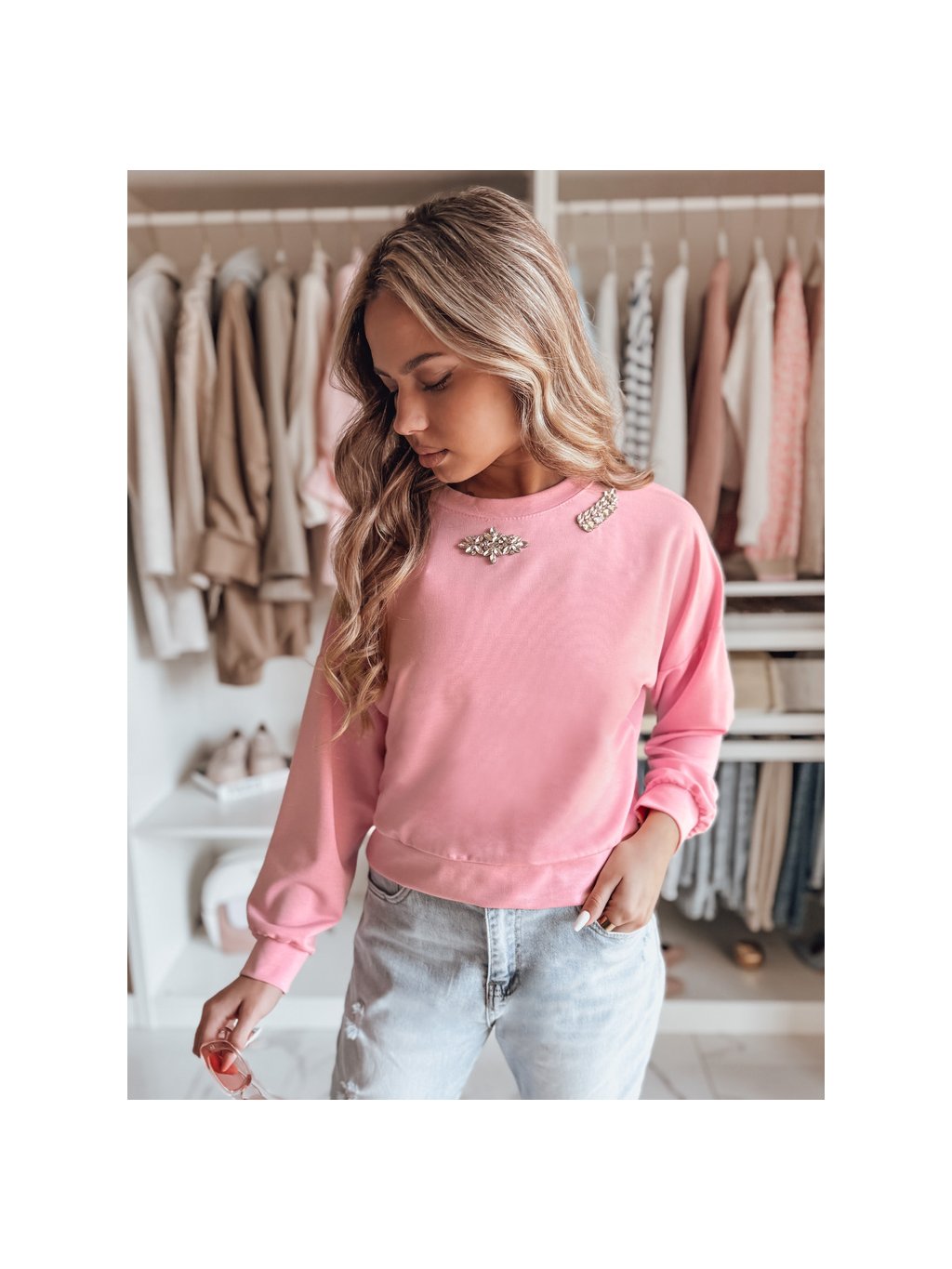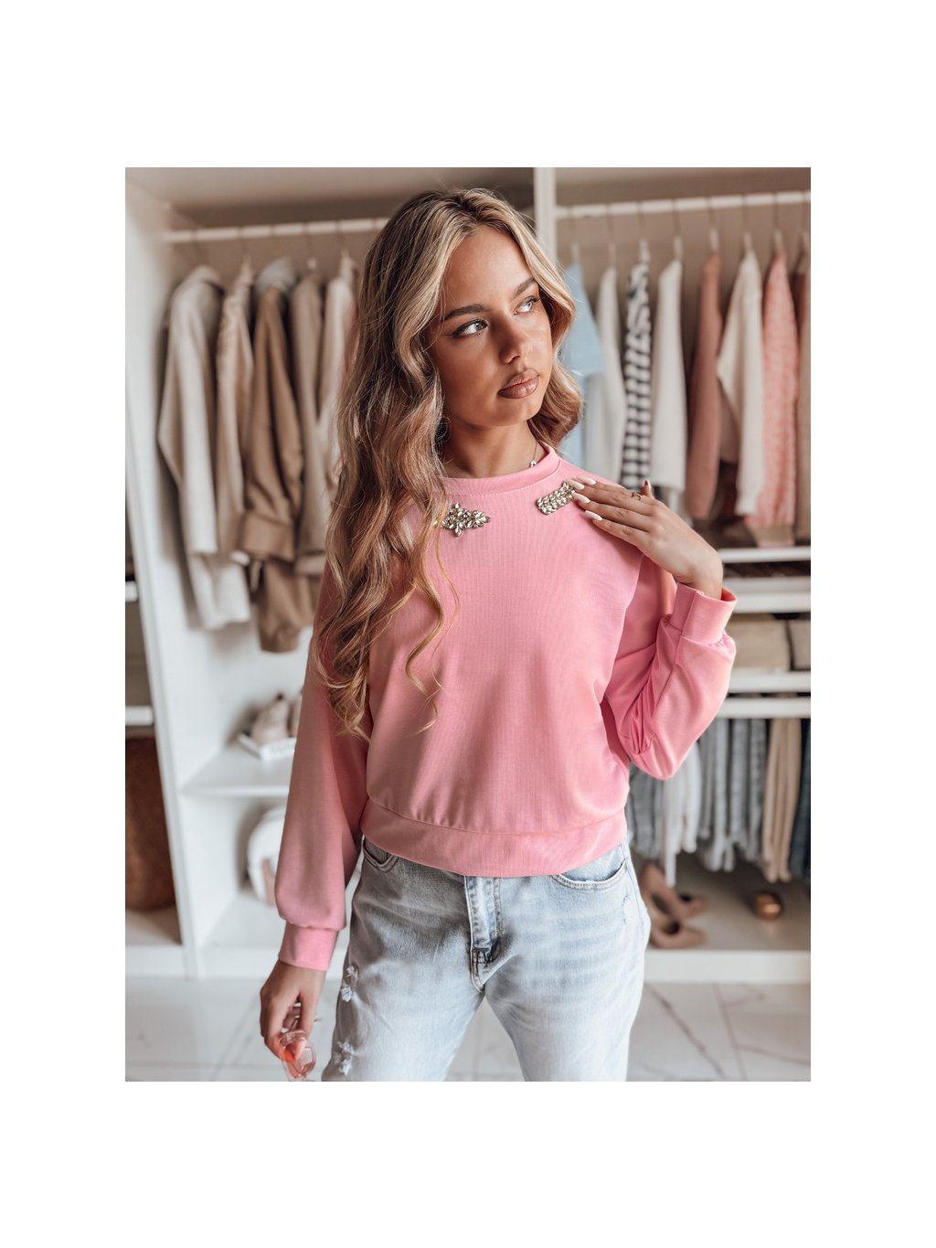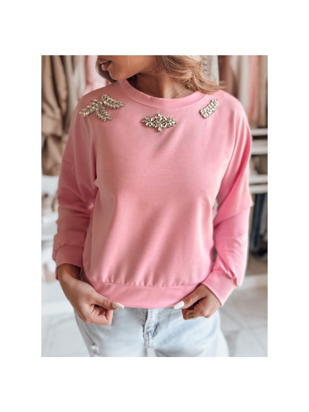 Rózsaszín női könnyű pulóver dekoratív díszítéssel CRYSTALIA
