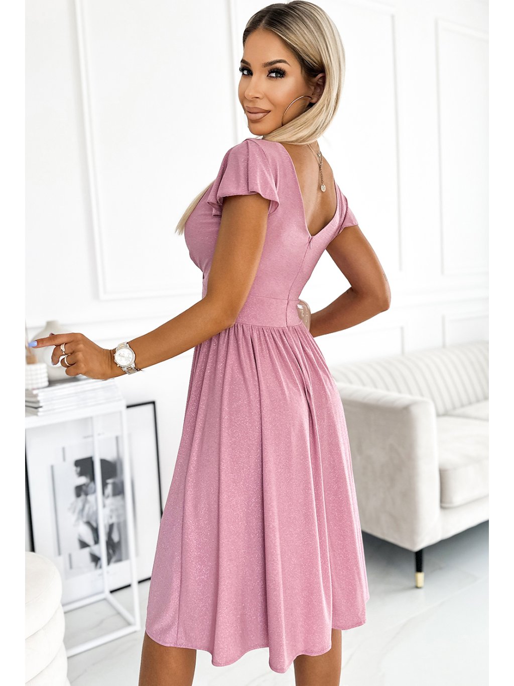 Rózsaszín ruha nyakkivágással és rövid ujjakkal MATYLDA