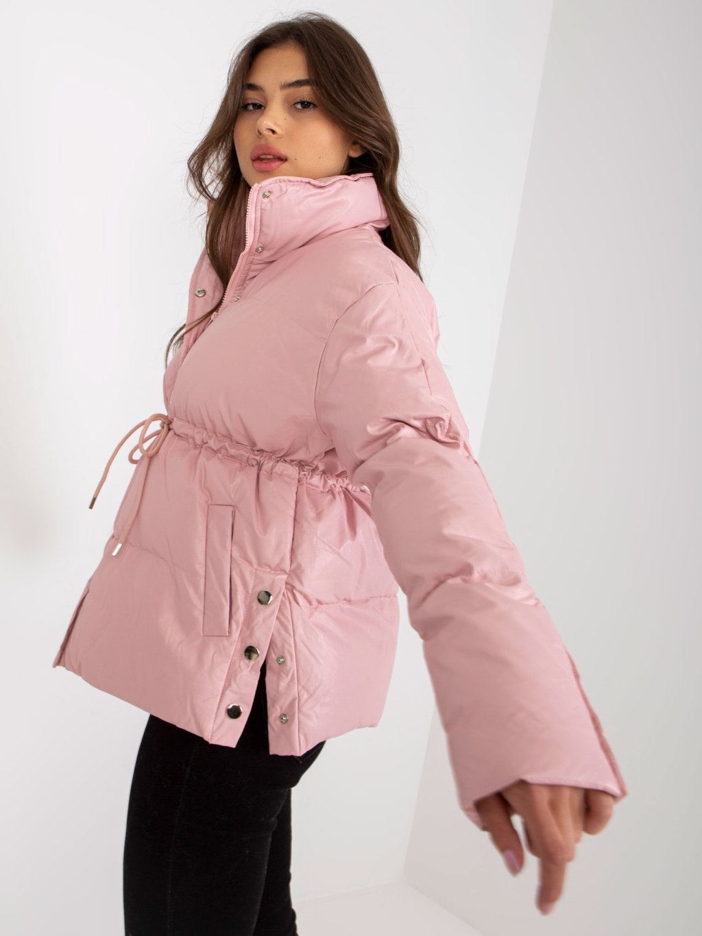 Rózsaszín steppelt kabát