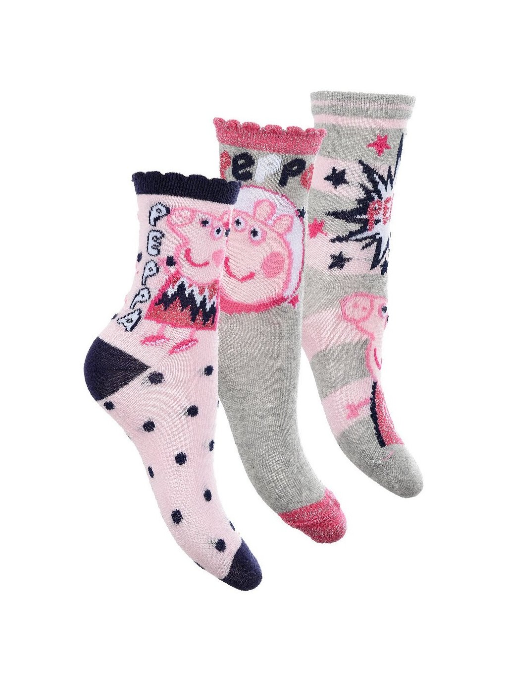 Rózsaszín / szürke / szürke-rózsaszín lányos zokni (3 pár) - Peppa Pig