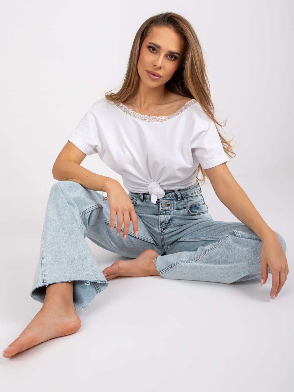 Salma fehér klasszikus, csipkével díszített póló