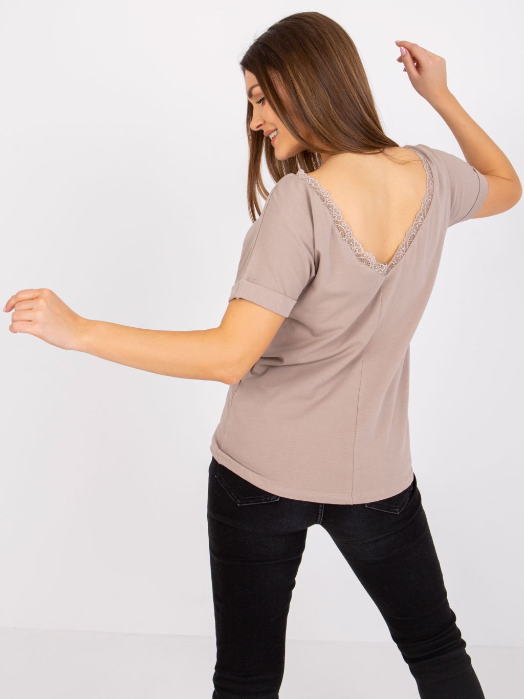 Salma kasszikus, bézs színű, csipkével díszített póló