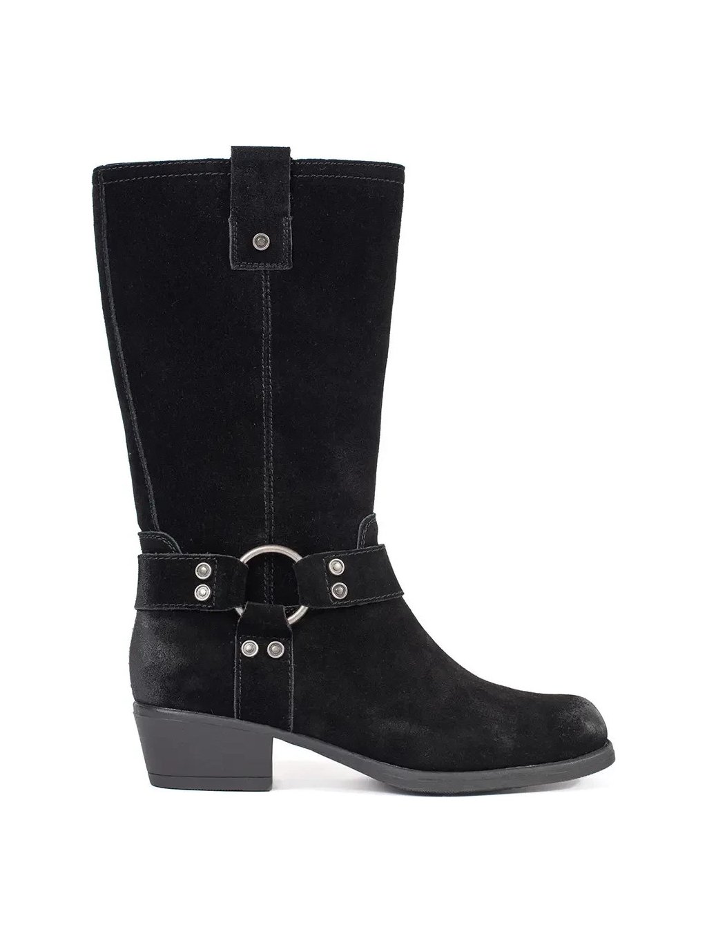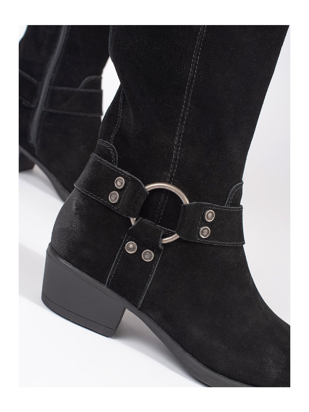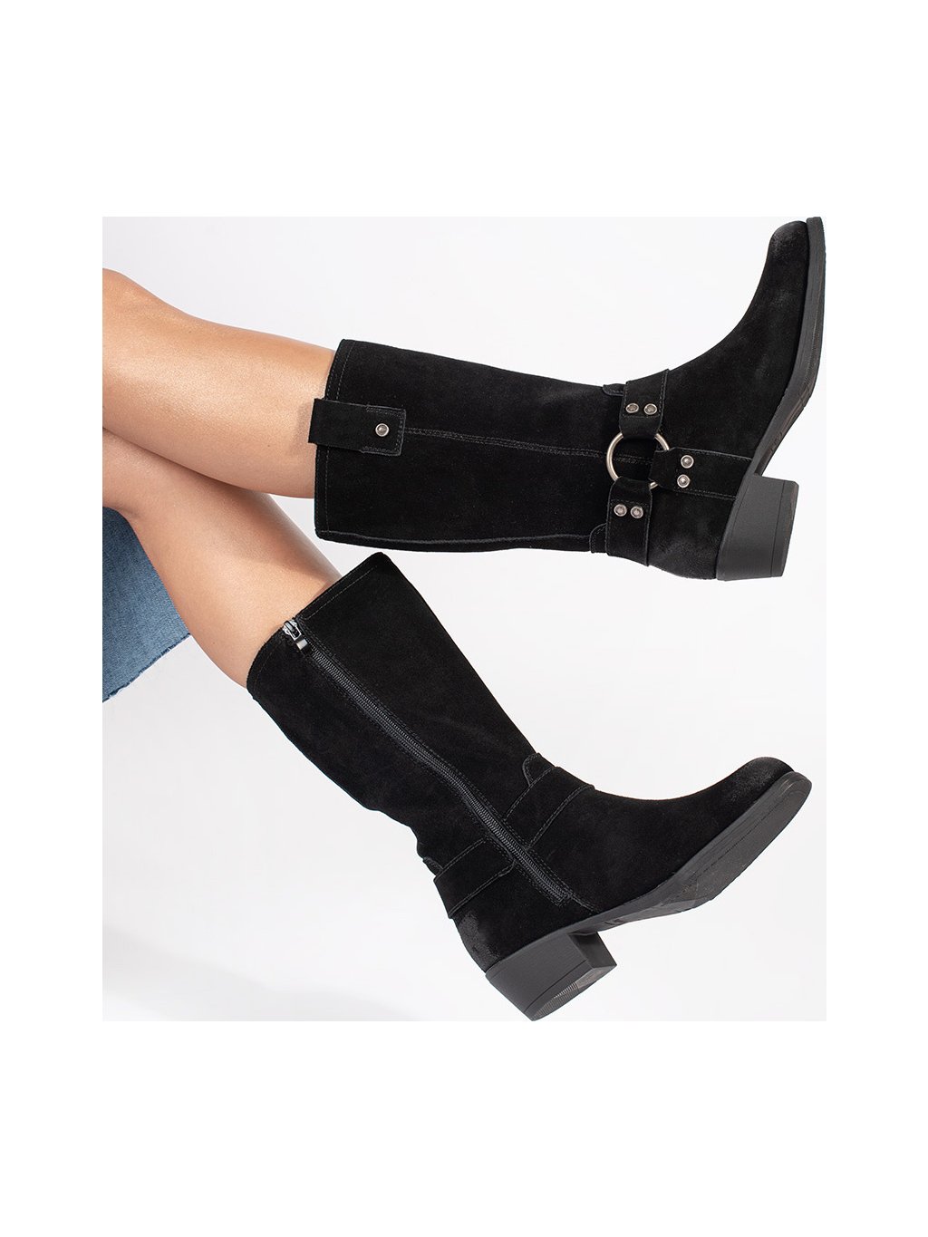 Sergio Leone fekete bőr női cowboy csizma, 4 cm sarok