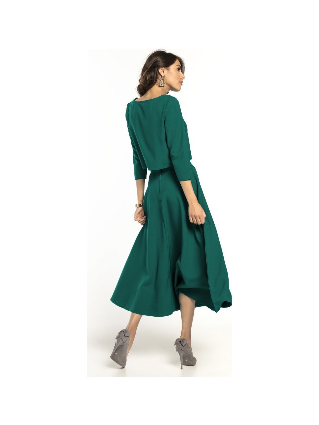 Smaragdszínű elegáns női rövid blúz 3/4-es ujjal