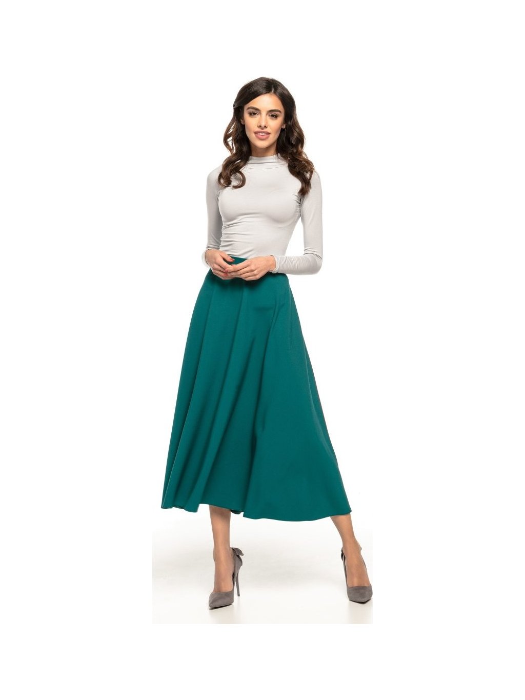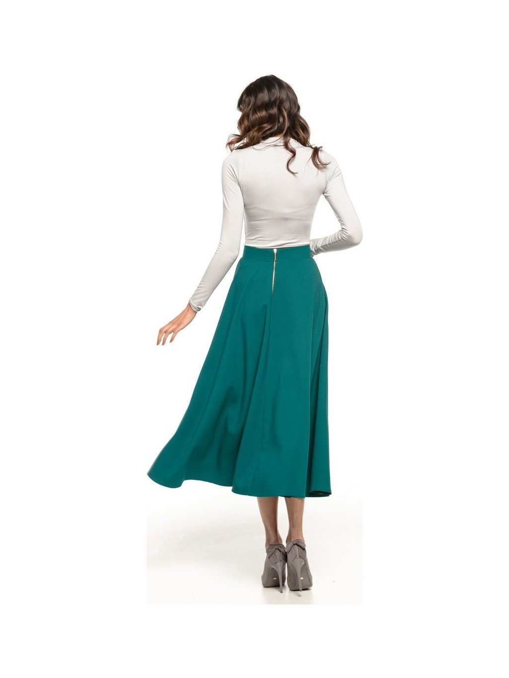 Smaragdszínű női midi szoknya kiszélesedő szabással