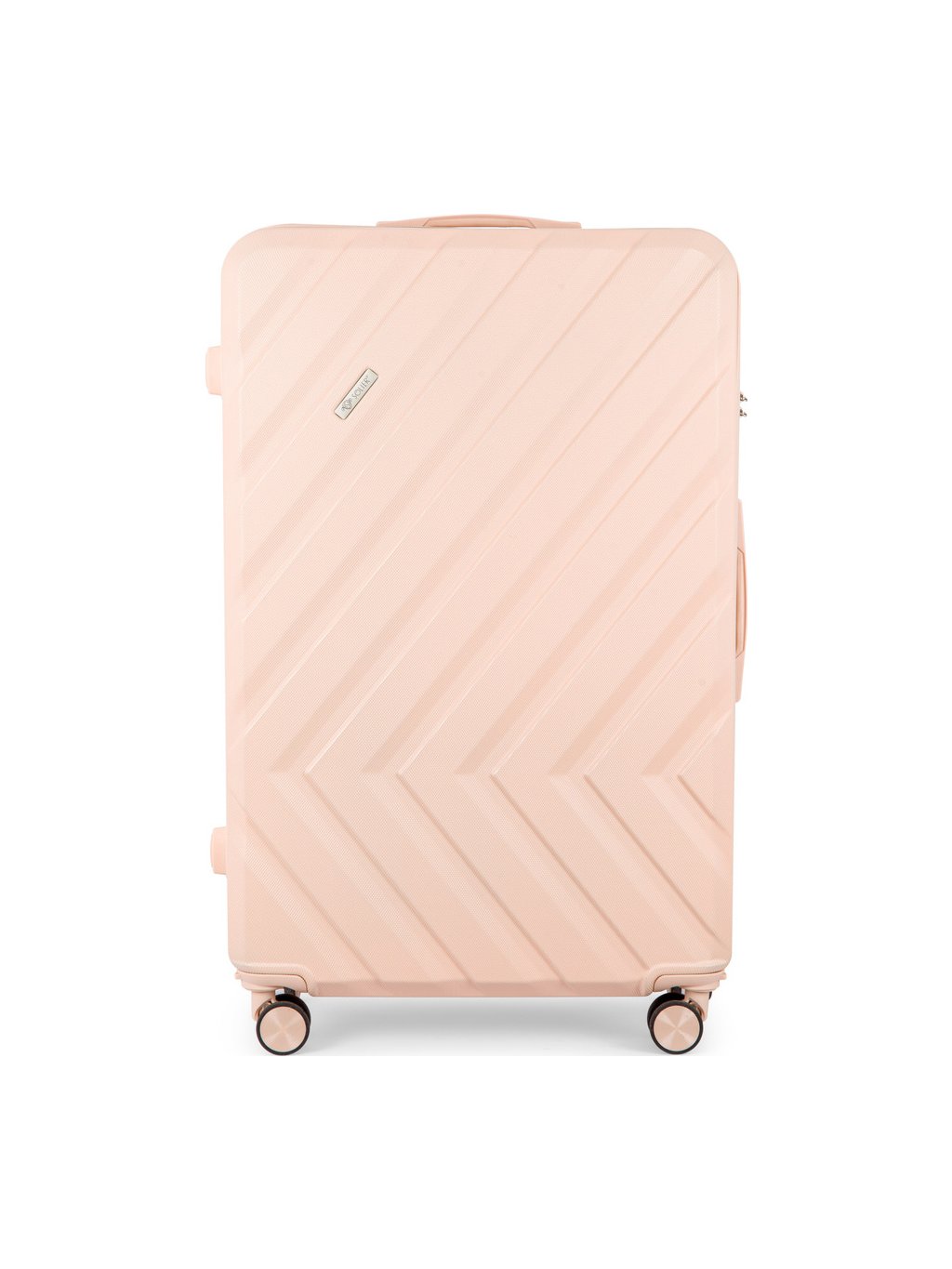 A bőrönd ABS anyagból készült, amelyet kivételes keménysége és ütés-, sérülés- és vízállósága jellemez. A sima felület könnyű karbantartást biztosít. A belseje erős cipzárral zárható, amelyet biztonságos titkosítási zár egészít ki. A kétrekeszes belső része egy praktikus cipzáras zseb , valamint a tartalom rögzítésére szolgáló rögzítő pántokkal van ellátva.